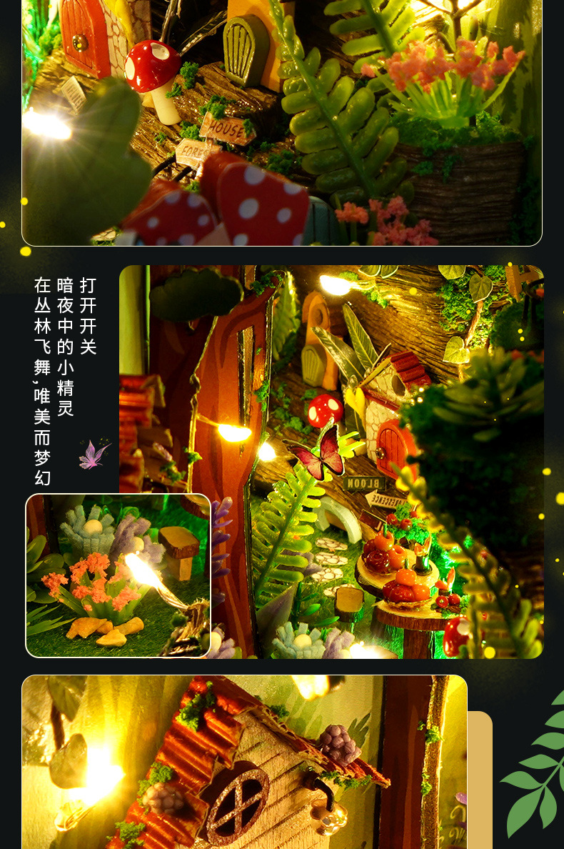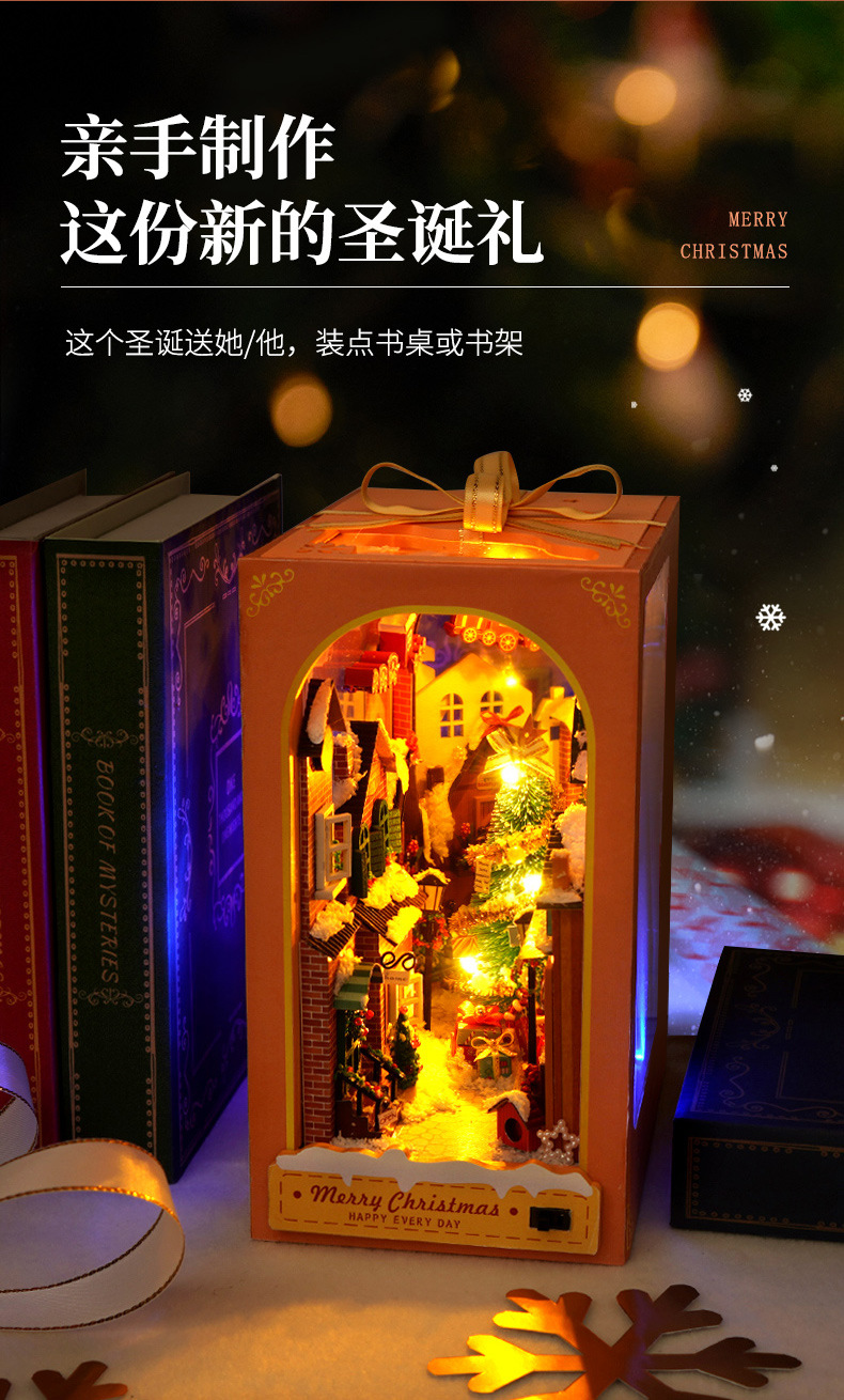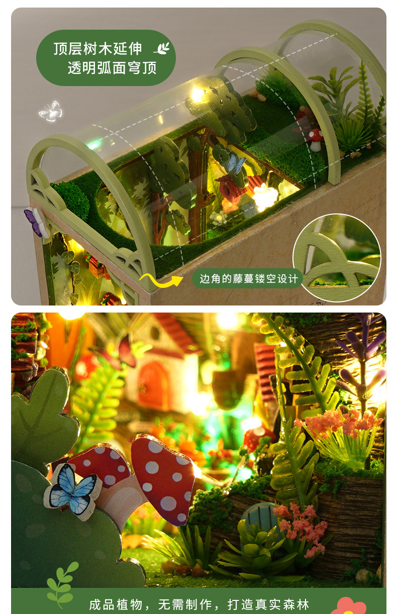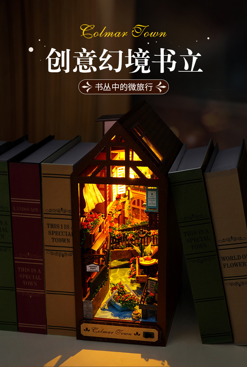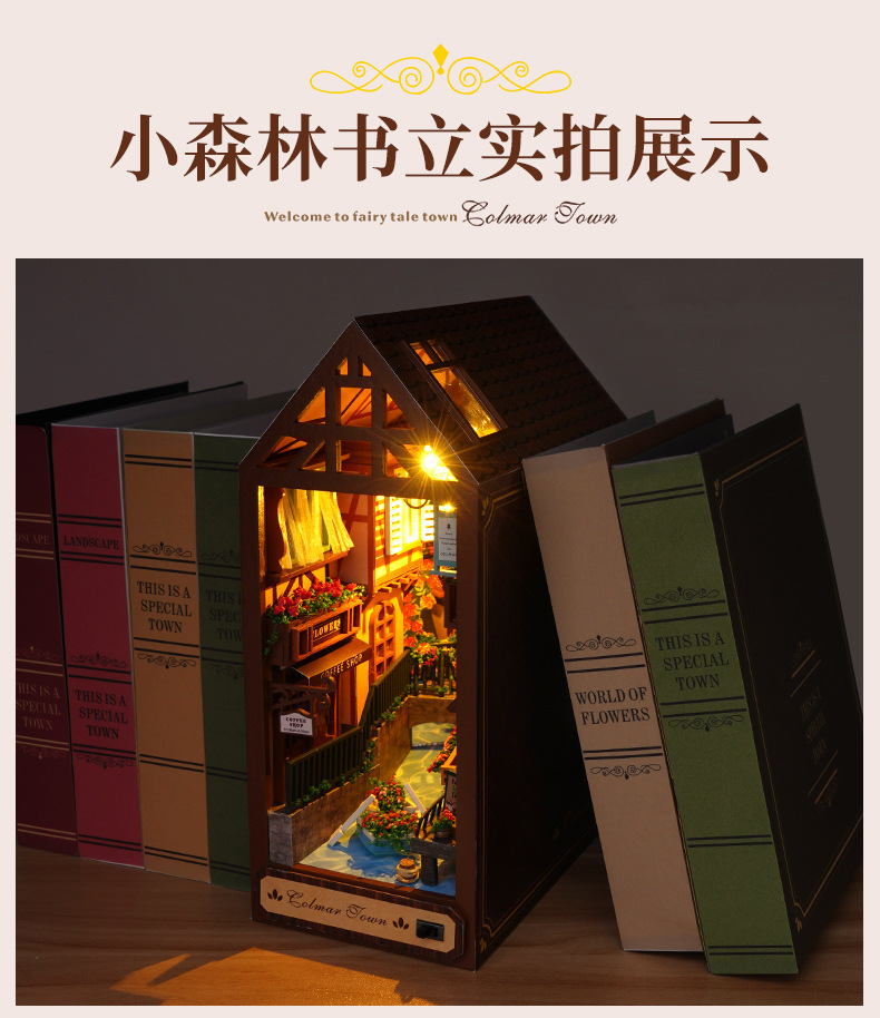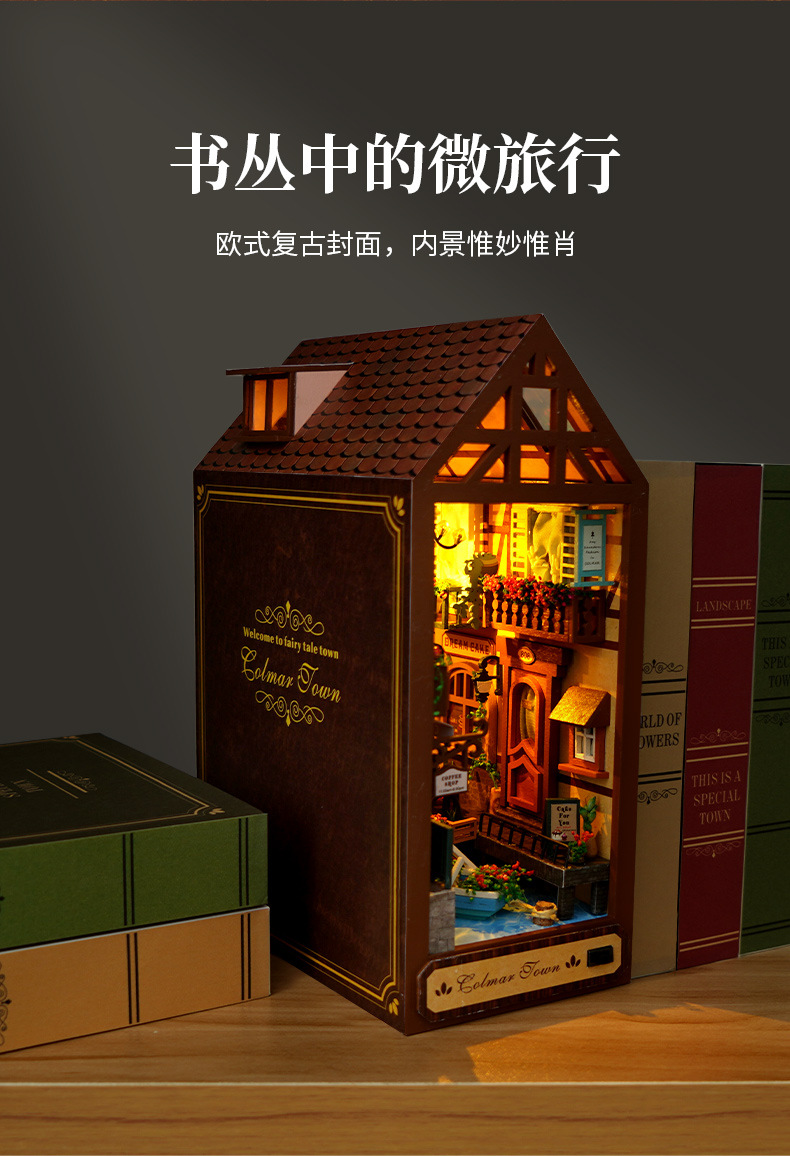 천유 DIY 작은 집 책꽂이 미니어처 장면 퍼즐 블록 창의적인 입체 수제 조립 모델 장식품 선물