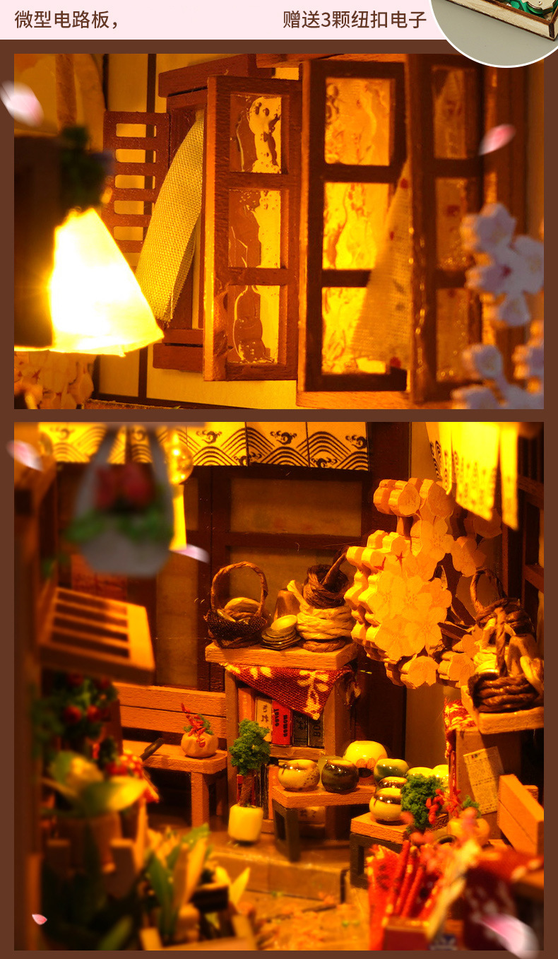 천유 DIY 작은 집 책꽂이 미니어처 장면 퍼즐 블록 창의적인 입체 수제 조립 모델 장식품 선물스토어 가기