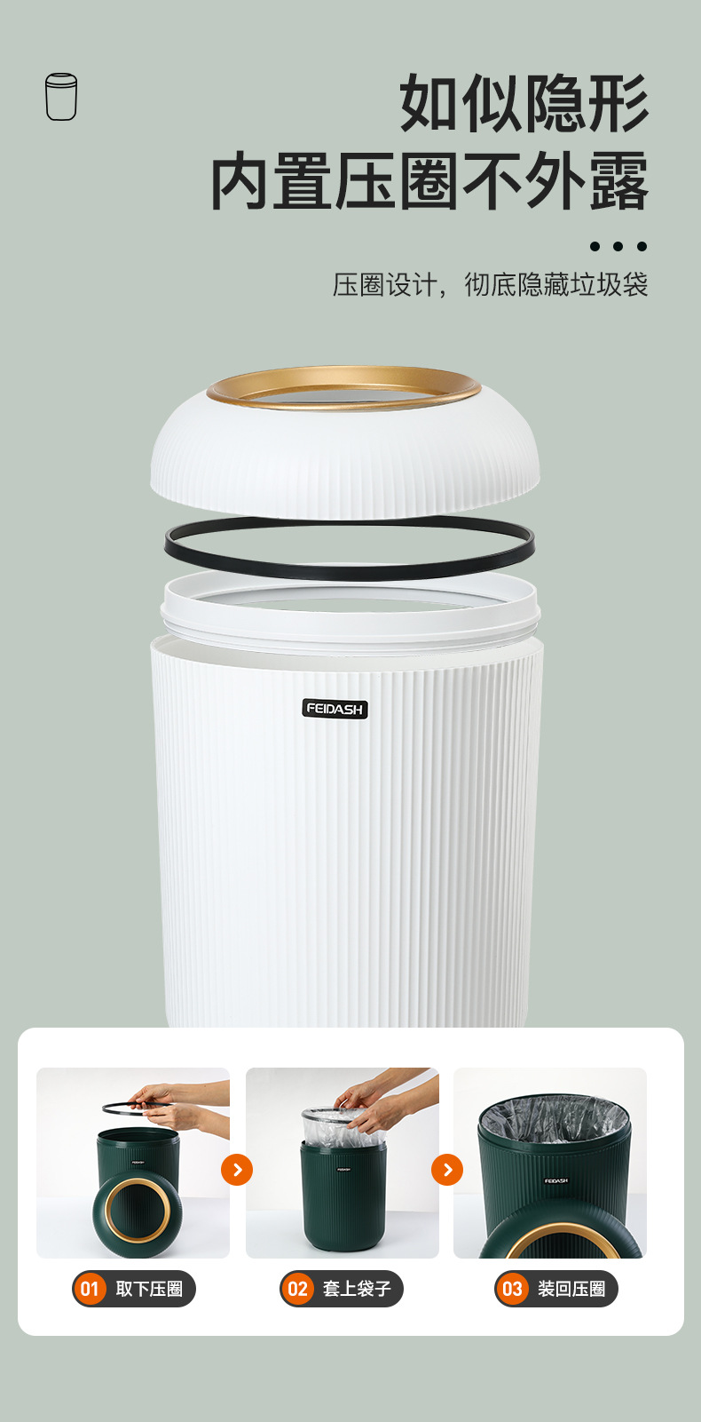 더블 아트 쓰레기통 둥근 줄무늬 표면 거실 쓰레기통 미끄럼 방지 바닥 프레스 오픈 뚜껑 쓰레기통 가정용