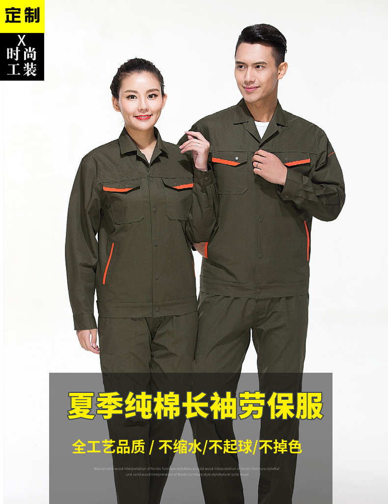 얇은 통기성 노동 보호 작업장 공장 의류 건설 현장 카키 다크 그린 인쇄를 용접하는 여름 긴 소매 순수한면 작업 세트스토어 가기