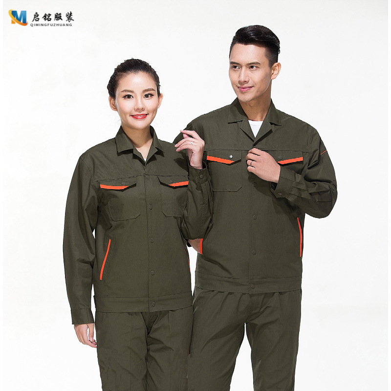 얇은 통기성 노동 보호 작업장 공장 의류 건설 현장 카키 다크 그린 인쇄를 용접하는 여름 긴 소매 순수한면 작업 세트
