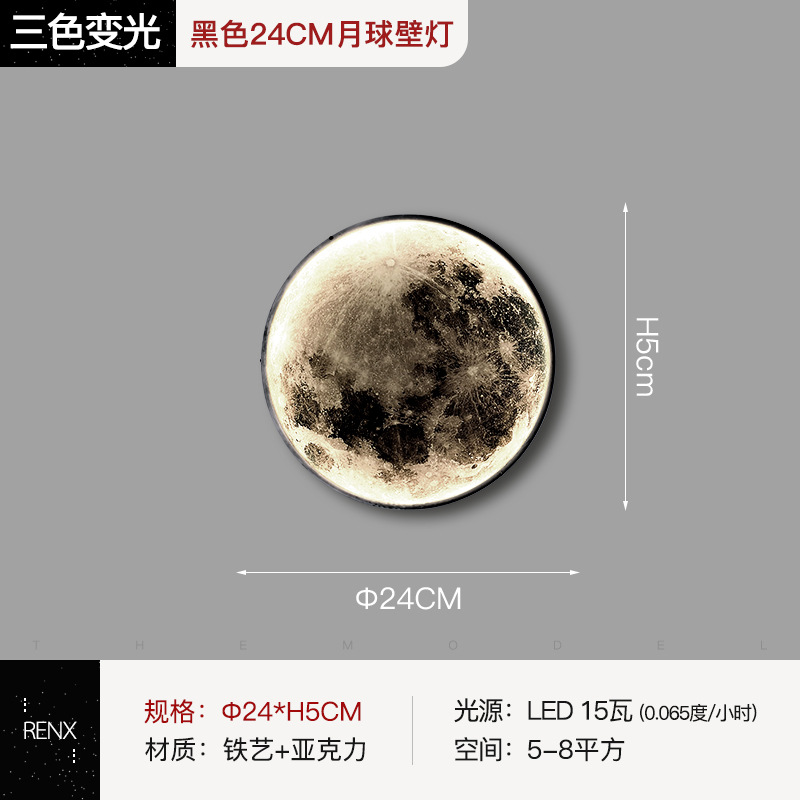 • 달 벽 램프 직경 24cm 3 색 가변 조명