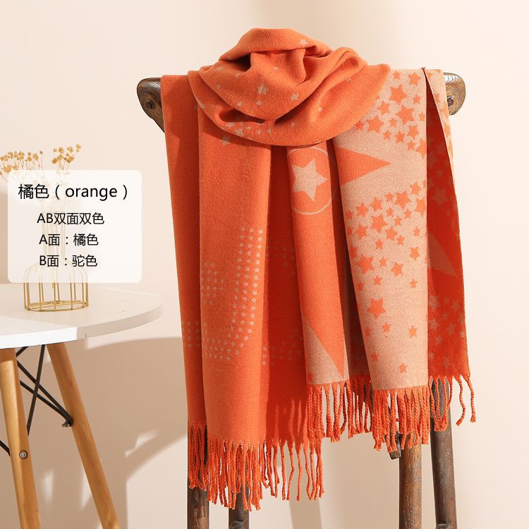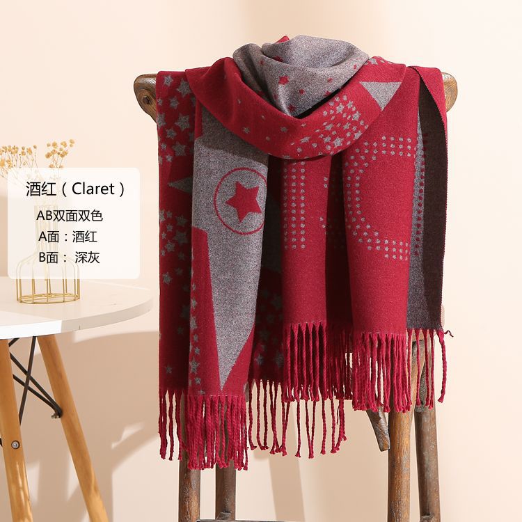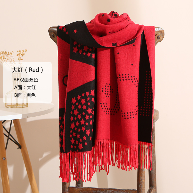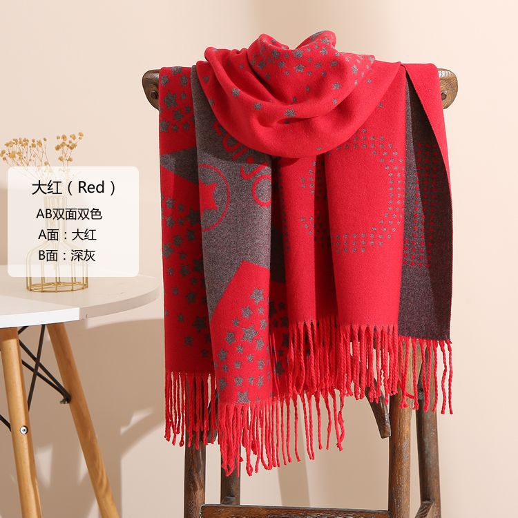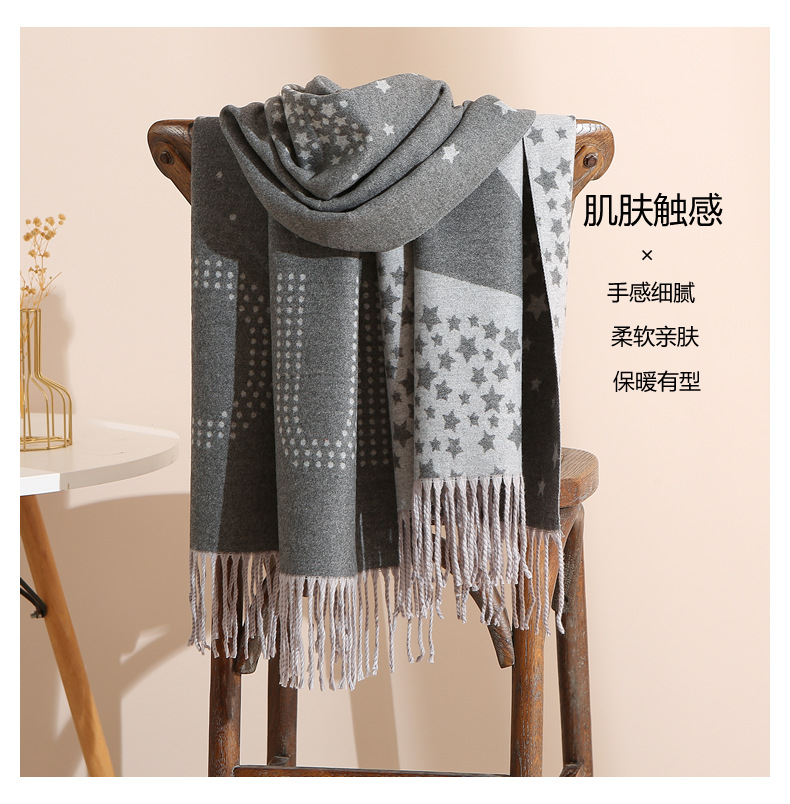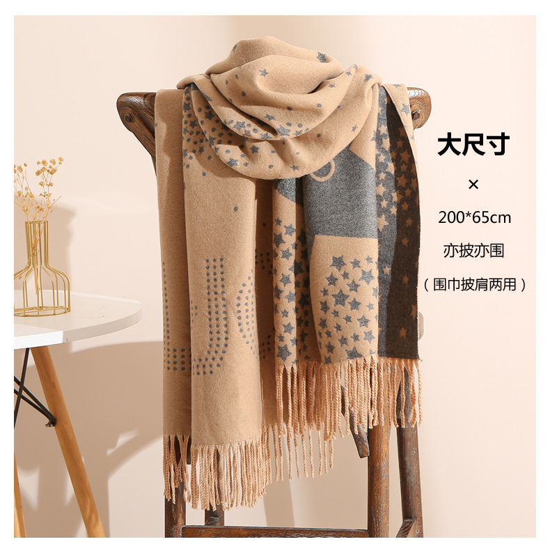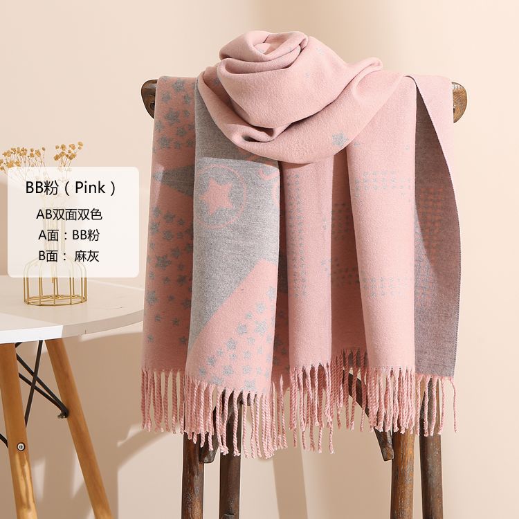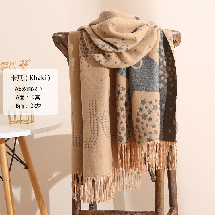 캐시미어 느낌 스카프 여성용 가을 겨울 한국 스타일 보온 목 보호 스카프 커플용 일본식 두꺼운 양면 프린지 숄