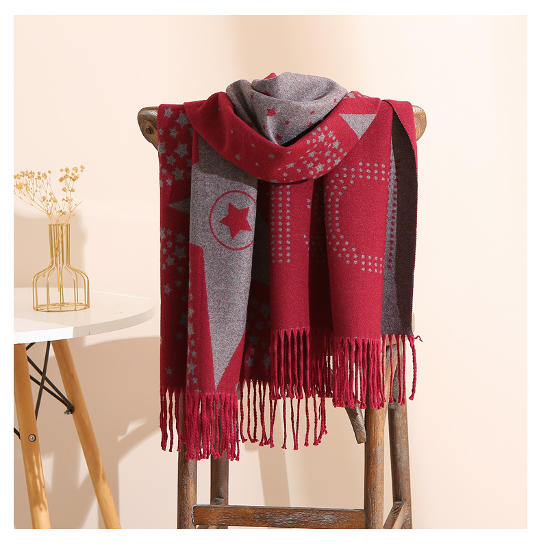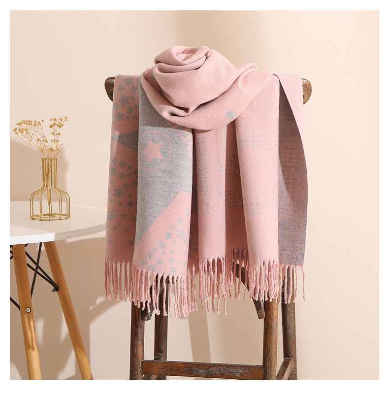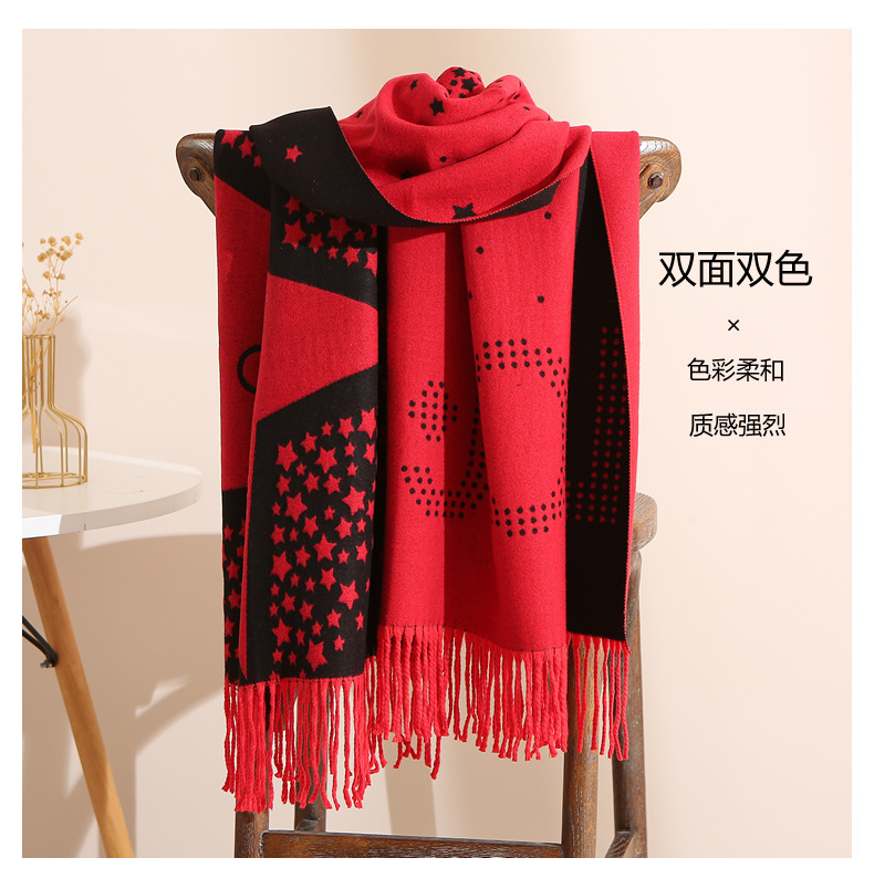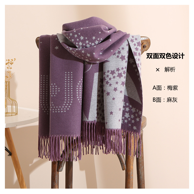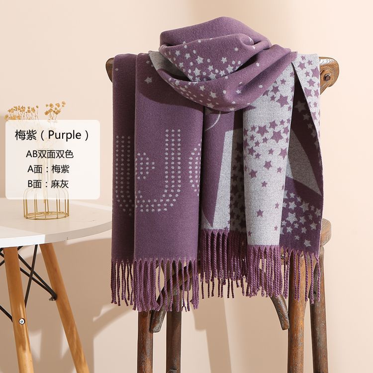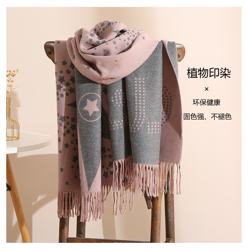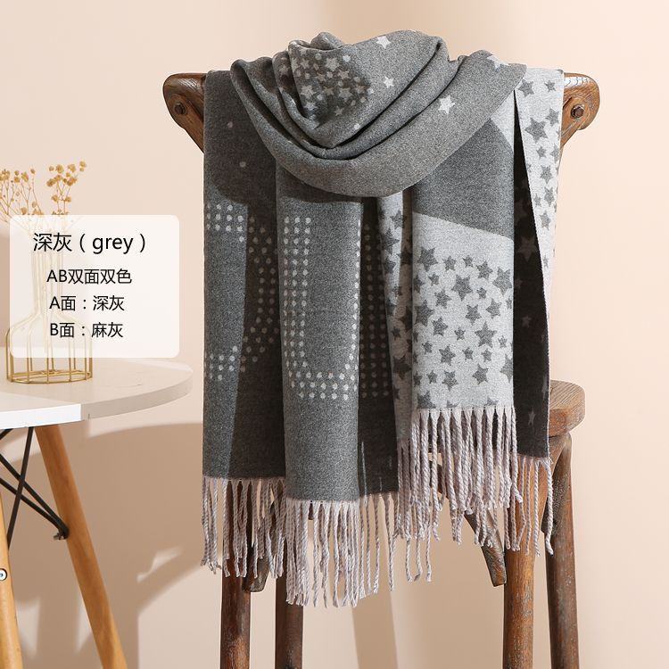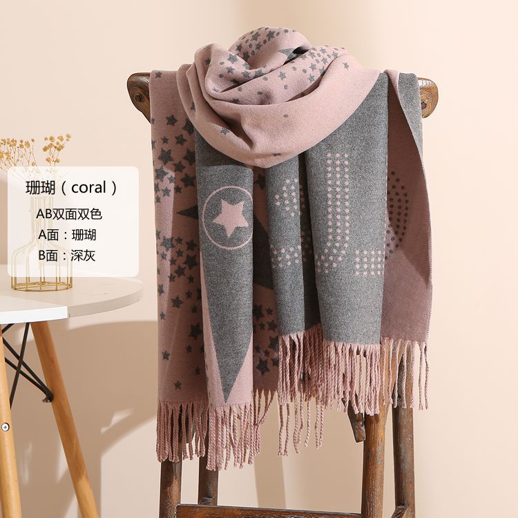 캐시미어 느낌 스카프 여성용 가을 겨울 한국 스타일 보온 목 보호 스카프 커플용 일본식 두꺼운 양면 프린지 숄