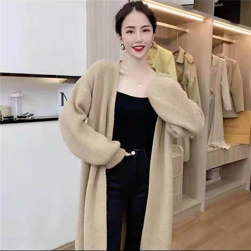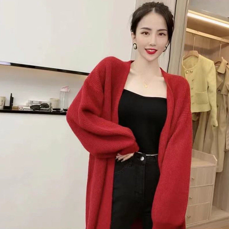 여성을위한 한국 스타일 소프트 왁스 솔리드 컬러 니트 카디건 2024 봄 새로운 느슨한 게으른 스타일 중간 길이 스웨터 재킷스토어 가기