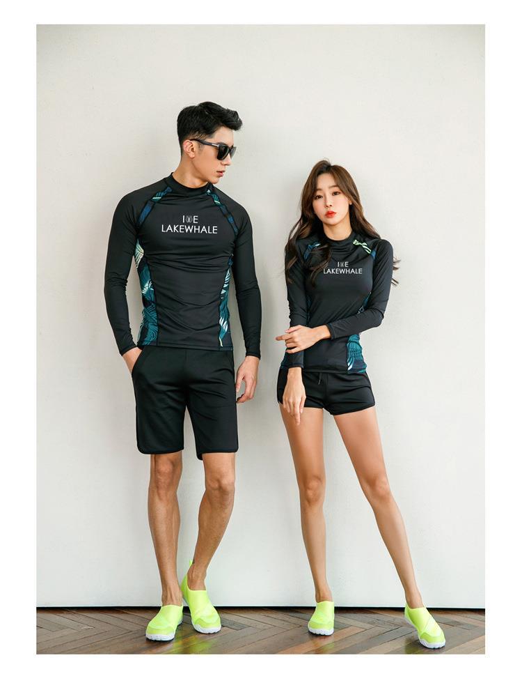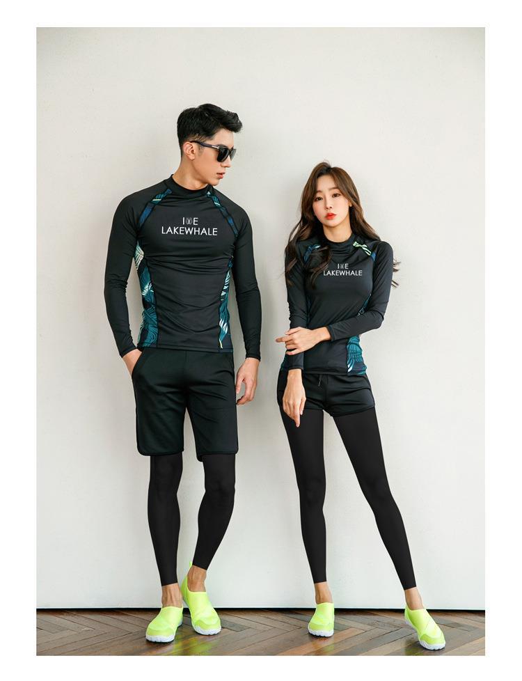 아마존 해외 무역 커플 다이빙 세트 한국의 긴 소매 바지 남성과 여성의 선 스크린 해파리 세트 스노클링 세트 보수적 인 수영복