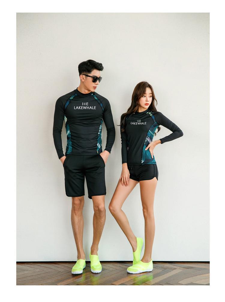 아마존 해외 무역 커플 다이빙 세트 한국의 긴 소매 바지 남성과 여성의 선 스크린 해파리 세트 스노클링 세트 보수적 인 수영복스토어 가기