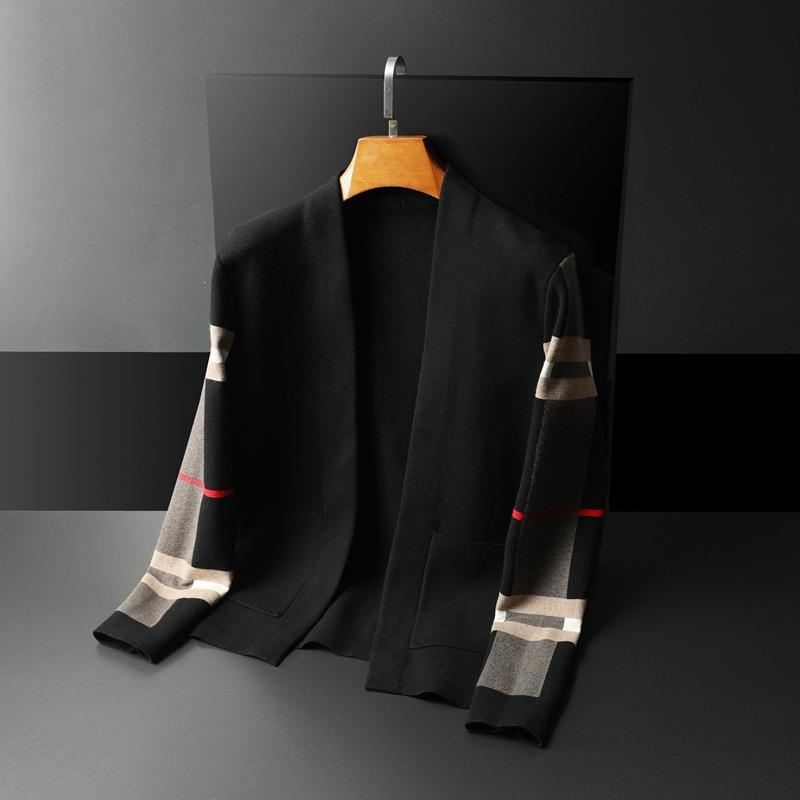 가을과 겨울 새로운 V-넥 스트라이프 긴팔 스웨터 트렌디 한 패션 남성용 슬림 핏 니트 가디건 재킷