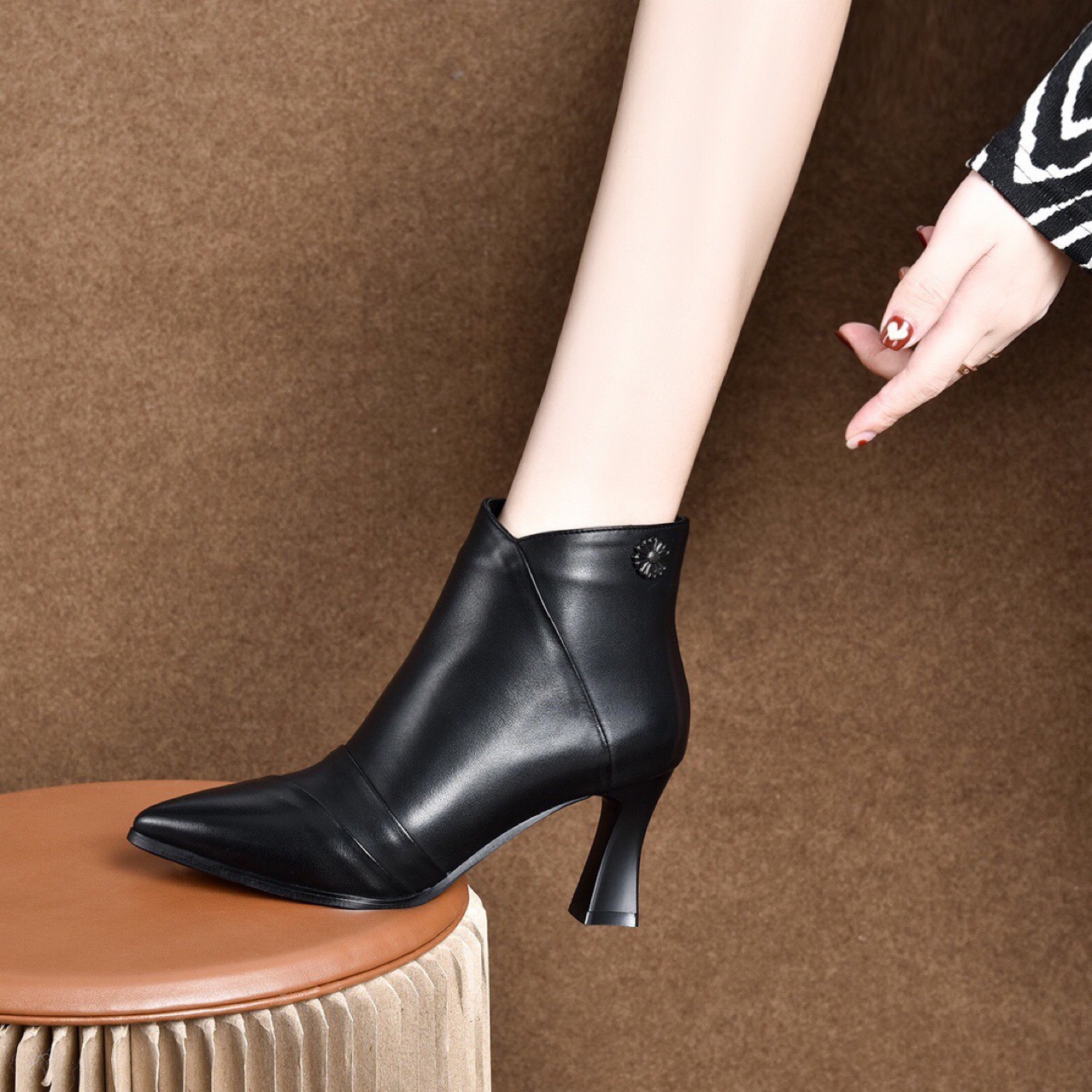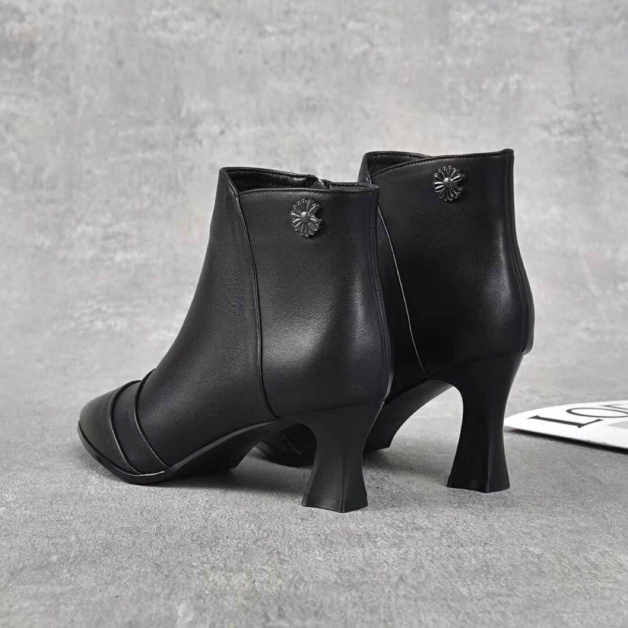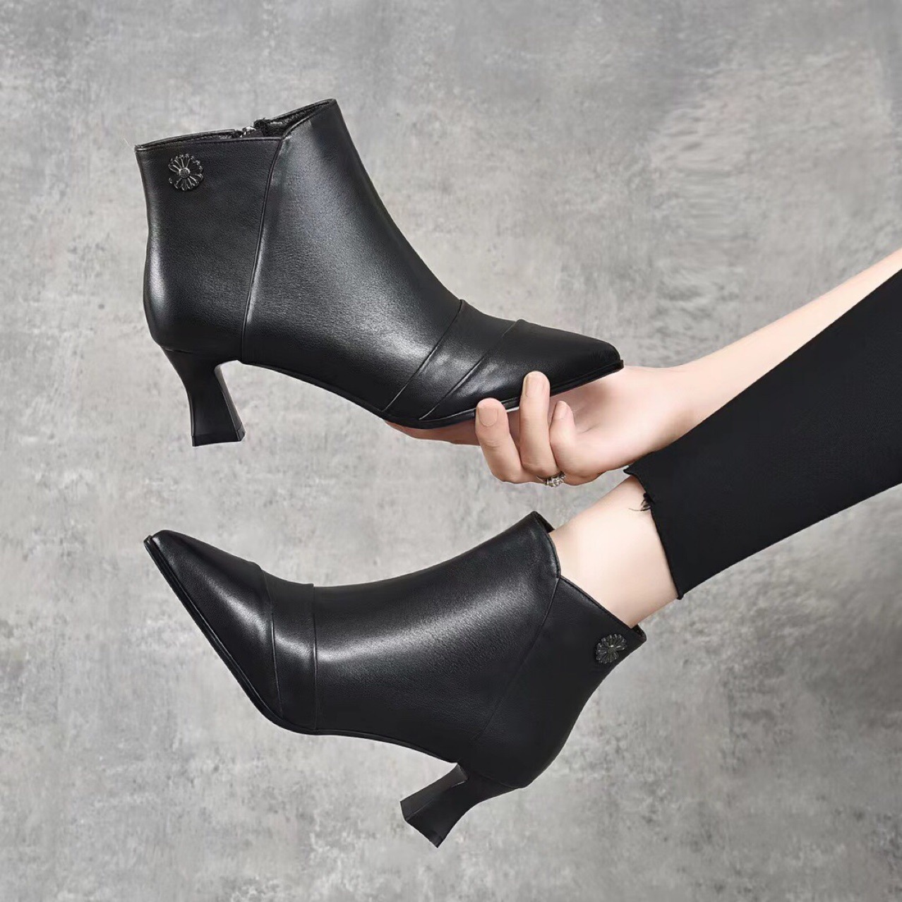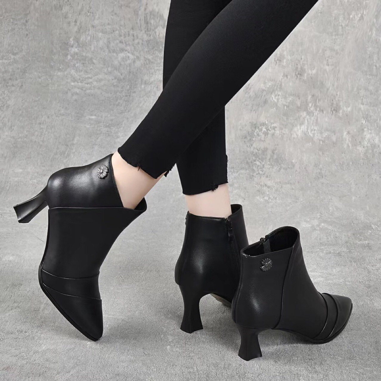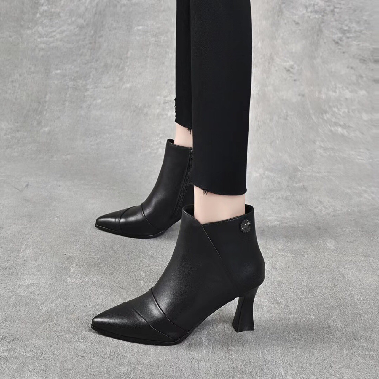 2022 가을과 겨울 올 매치 정품 가죽 마틴 부츠 뾰족한 스틸레토 힐 발목 부츠 하이힐 여성용 사이드 지퍼 탑 레이어 소가죽스토어 가기