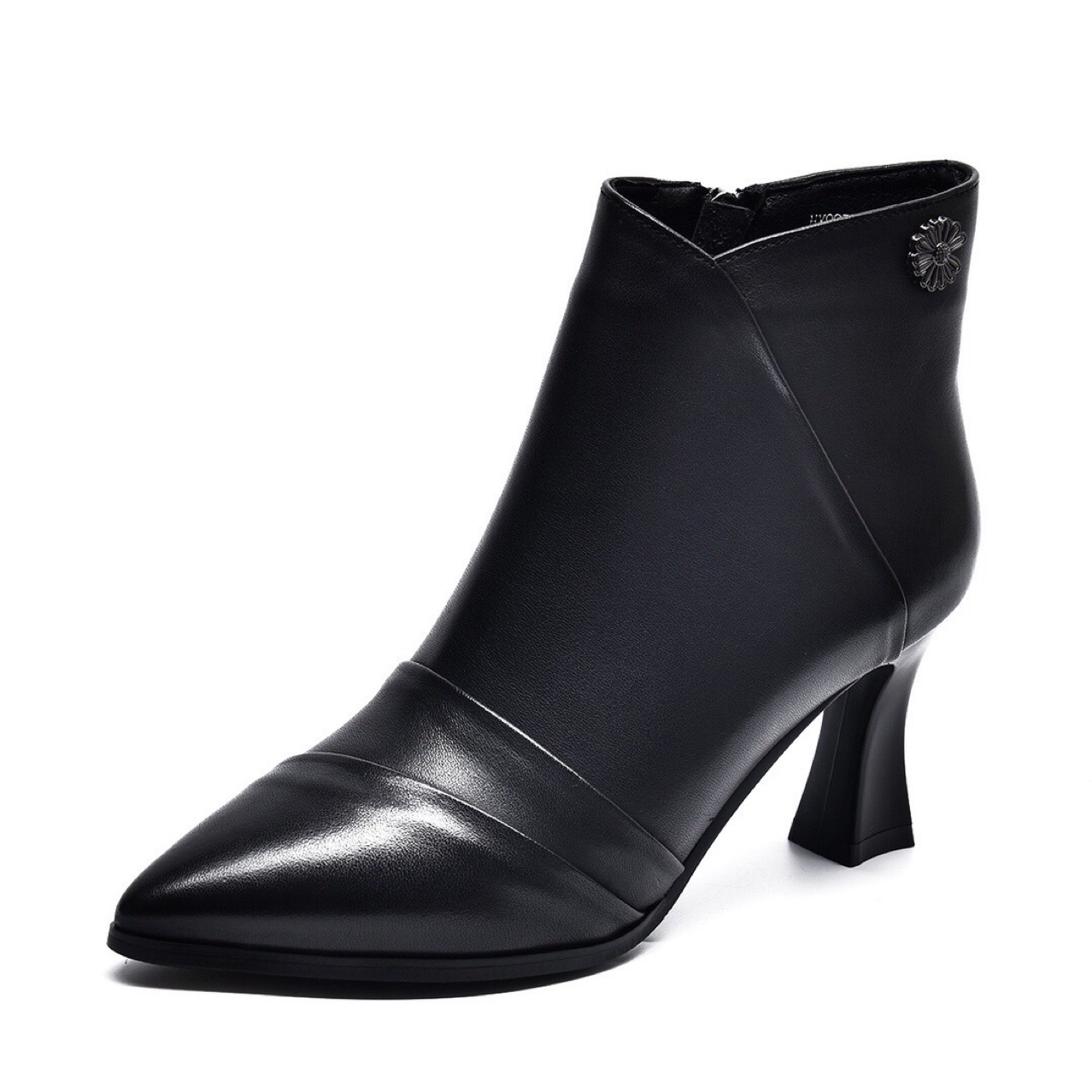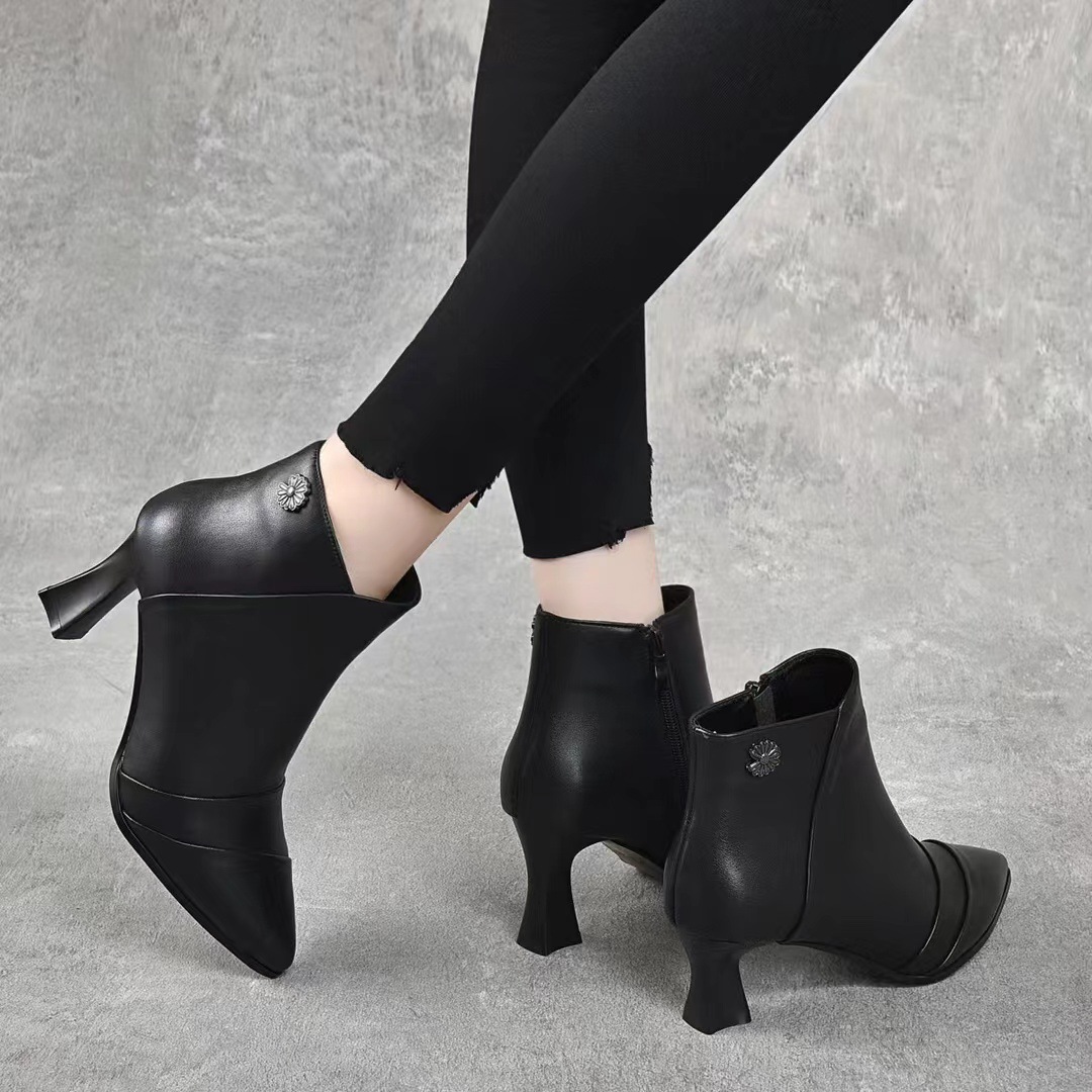 2022 가을과 겨울 올 매치 정품 가죽 마틴 부츠 뾰족한 스틸레토 힐 발목 부츠 하이힐 여성용 사이드 지퍼 탑 레이어 소가죽