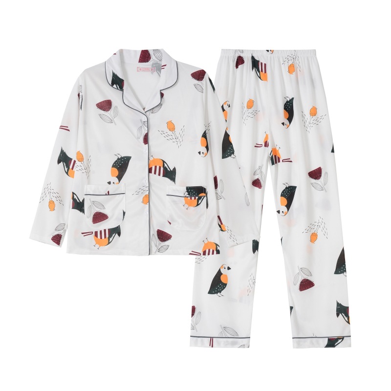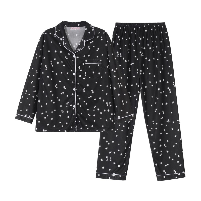 가을과 겨울 긴 소매 잠옷 여자의 옷깃 카디건 세트 물방울 무늬 바지 가정 의류 봄과 가을 복장 플러스 사이즈 스톨스토어 가기