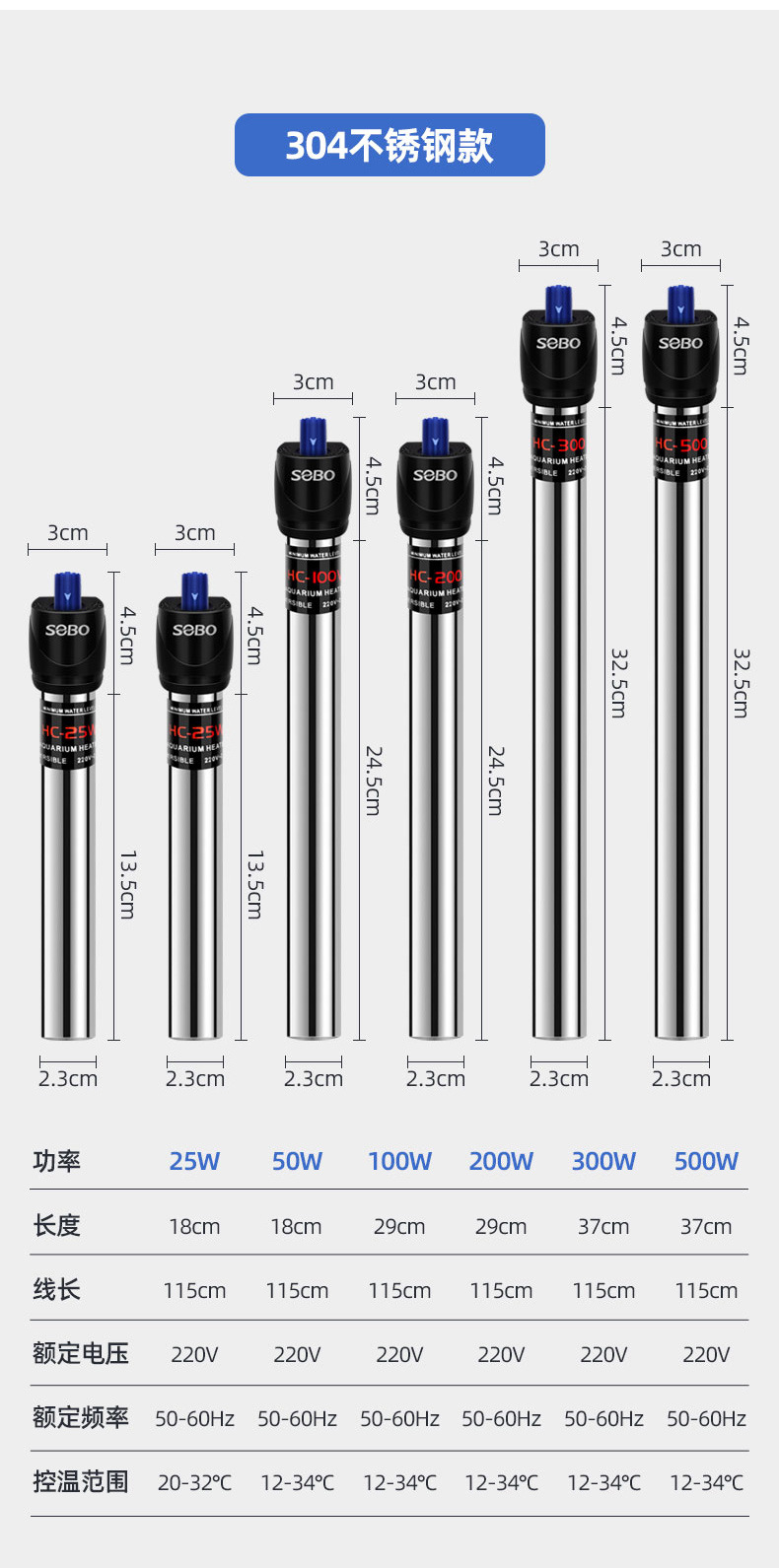 송바오 스테인리스 히팅 로드 자동 일정 온도 어항 가정용 수족관 히터 거북이 탱크 초단전 전기 히팅 로드