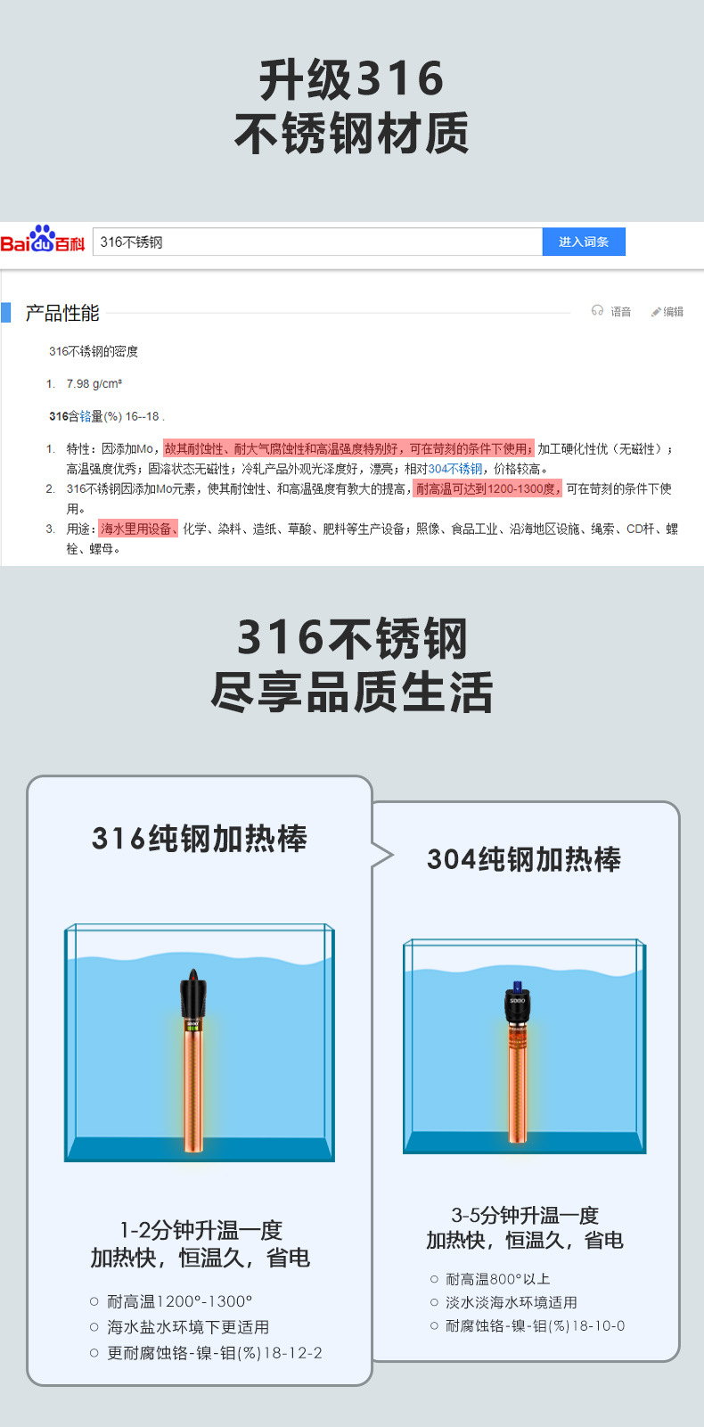 송바오 스테인리스 히팅 로드 자동 일정 온도 어항 가정용 수족관 히터 거북이 탱크 초단전 전기 히팅 로드스토어 가기