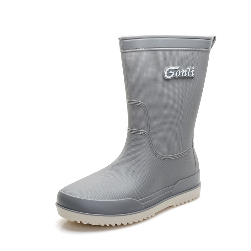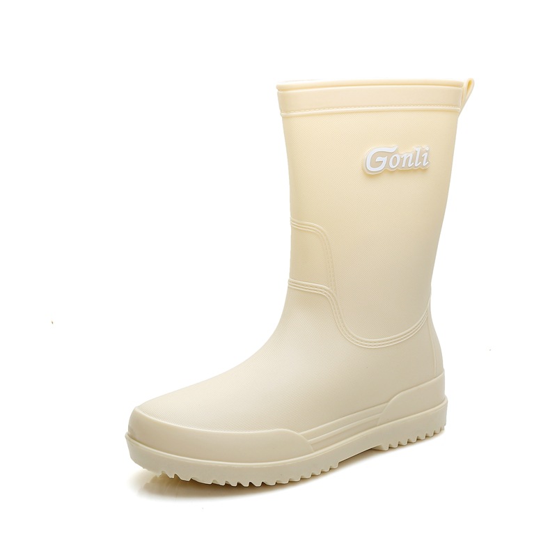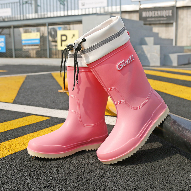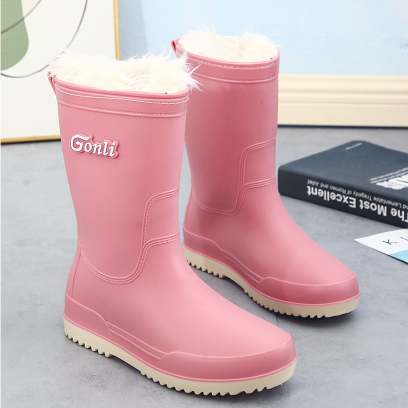 비 부츠 여성의 세련된 야외 작업 신발 두꺼운 밑창 중반 송아지 방수 미끄럼 방지 레인 부츠 기모 따뜻한 물 신발 여성