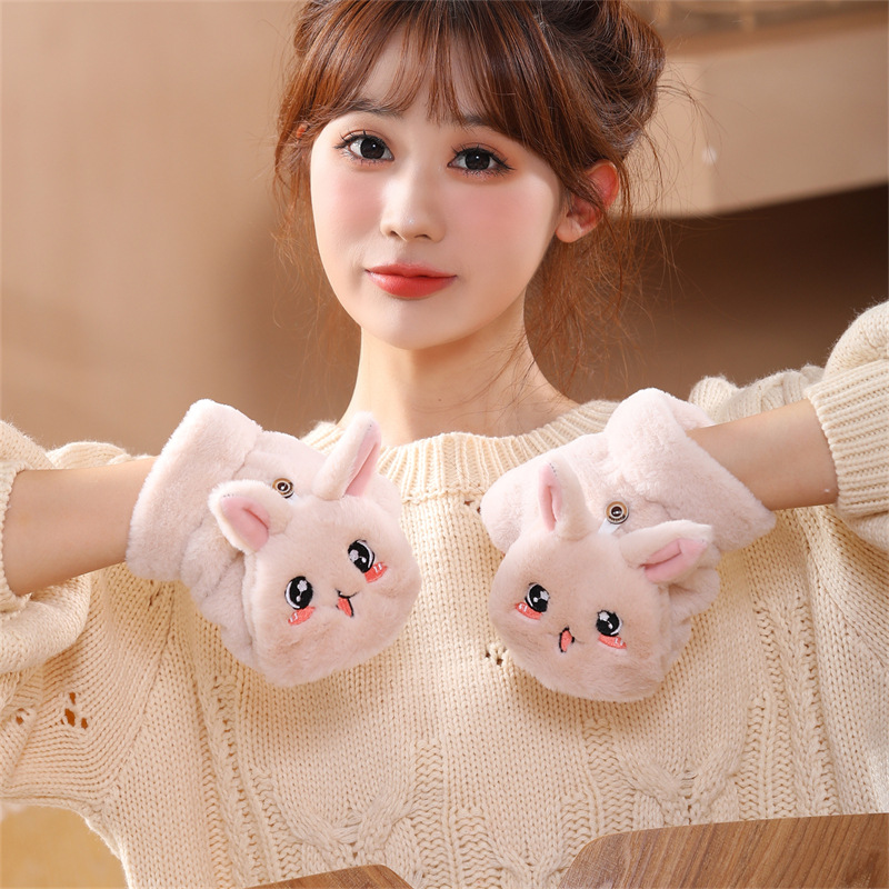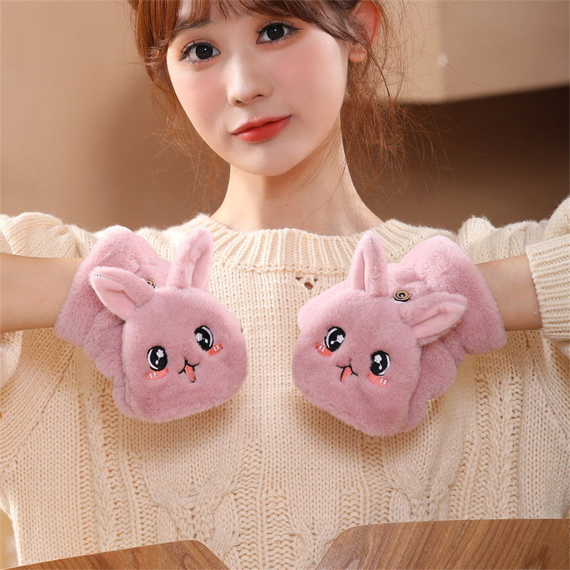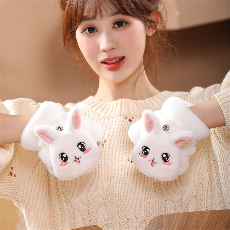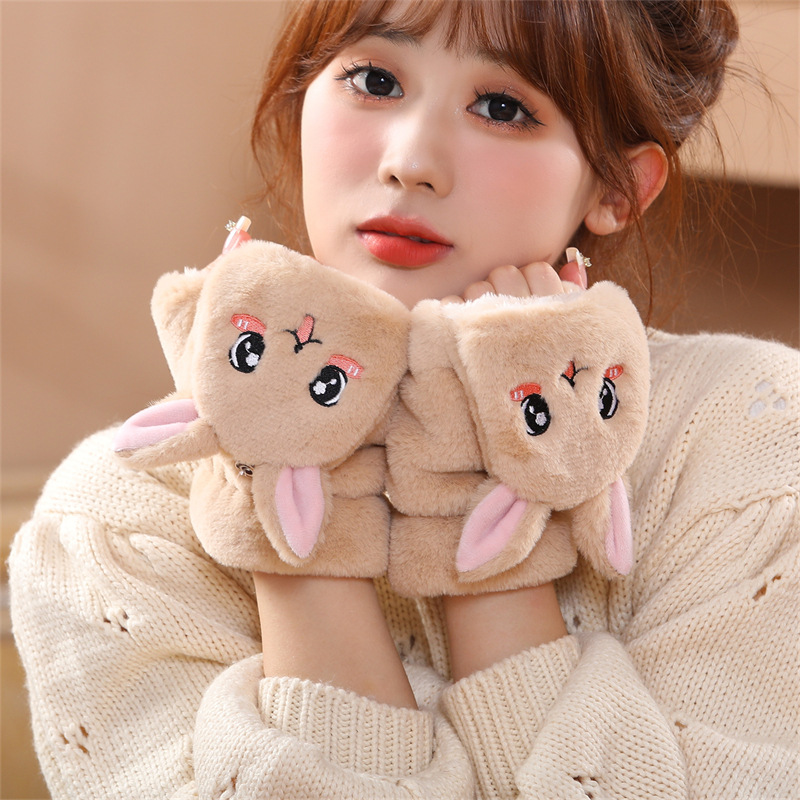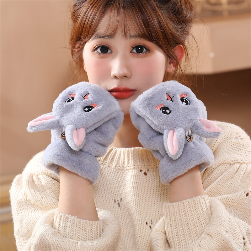 장갑 겨울 여자의 귀여운 학생 기모 두꺼운 만화 플립 따뜻한 면 한국 스타일 사이클링 플러시 겨울에스토어 가기
