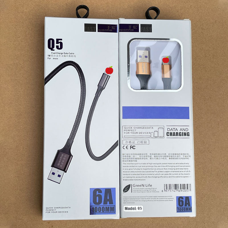 전체 구리 코어 박스형 휴대 전화 충전 데이터 케이블 도매 안드로이드 애플 타입-c 플래시 충전 화웨이 빠른 충전 라인