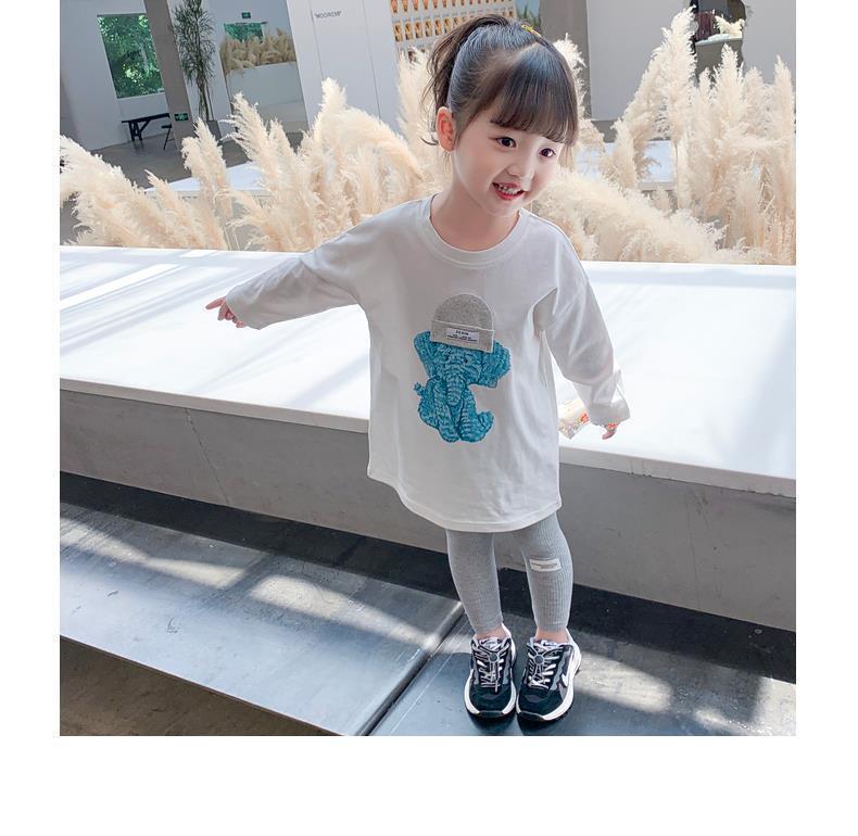 봄과 가을 여성 아동복 레깅스 아기의 서양 스타일 어린이 맞춤형 유행 브랜드 한국 스타일 천 고집 레터 핏 스트립 탄성 바지스토어 가기