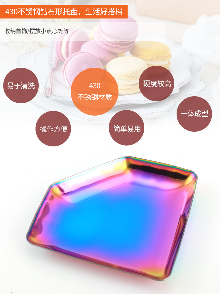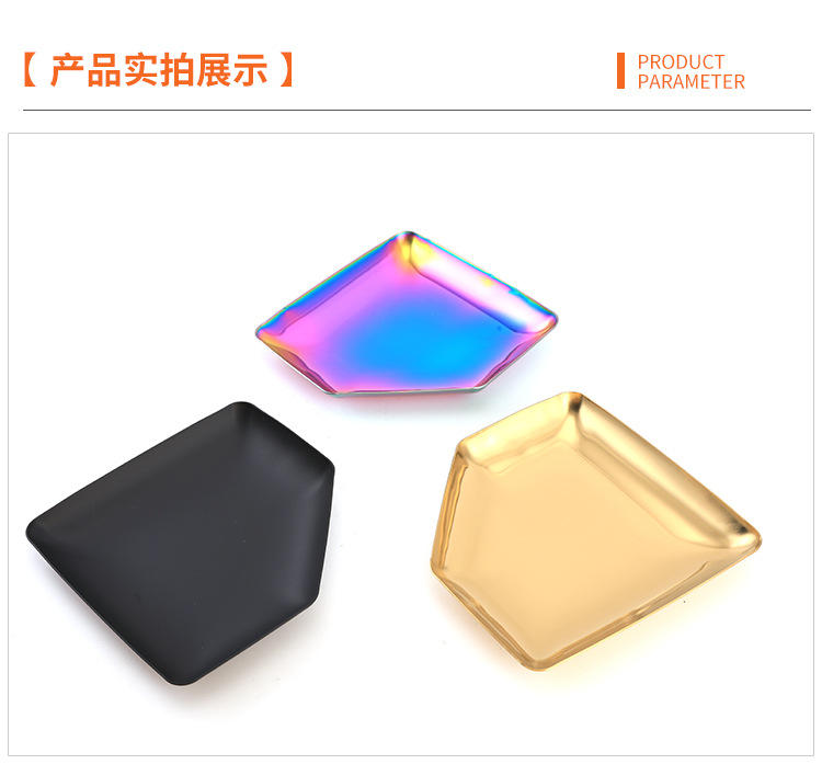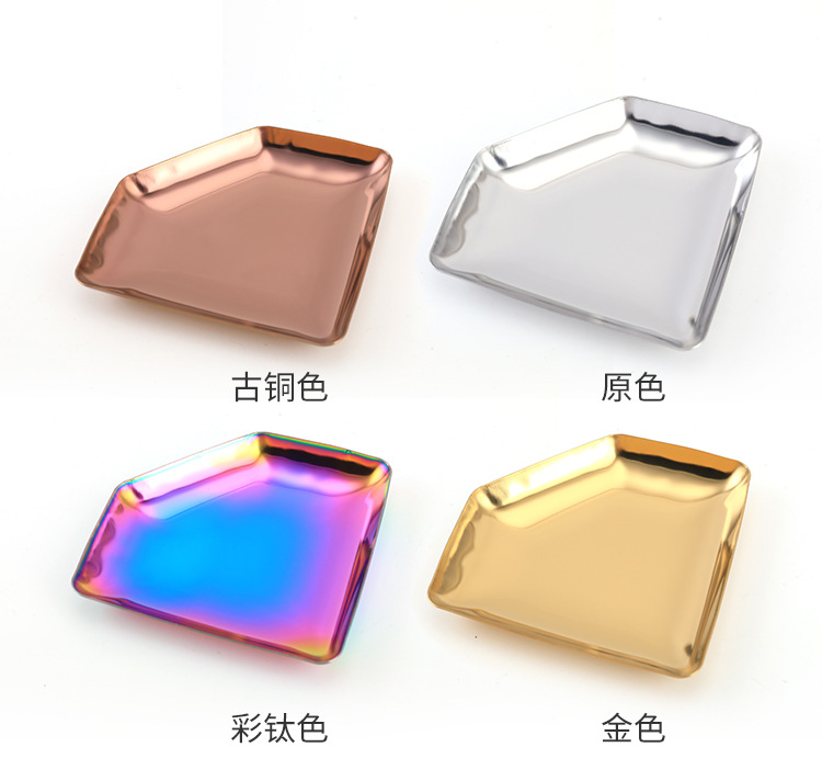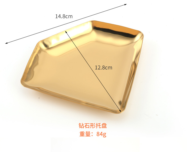 유럽 스타일 다이아몬드 모양 보석 트레이 황금 접시에 북유럽 스타일 스테인레스 스틸 과일 접시 금속 저장 접시 재고스토어 가기