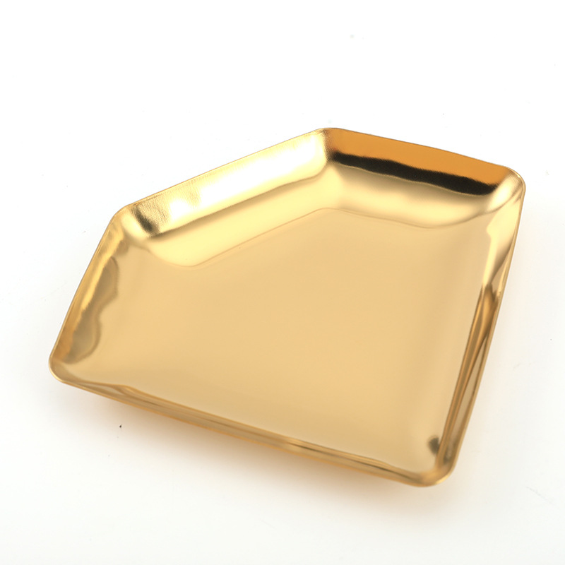 유럽 스타일 다이아몬드 모양 보석 트레이 황금 접시에 북유럽 스타일 스테인레스 스틸 과일 접시 금속 저장 접시 재고