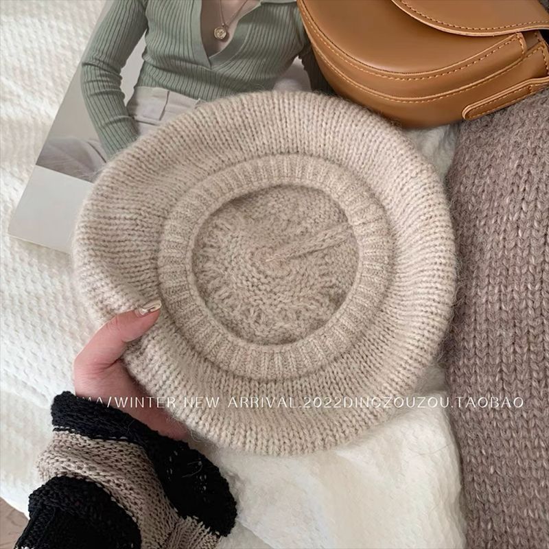 원래 한국 싱글 모헤어 울 실 니트 파일 베레모 대형 스트레치 큰 머리 랩 봉제 화가 모자
