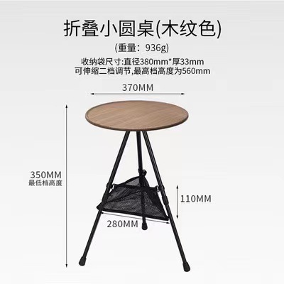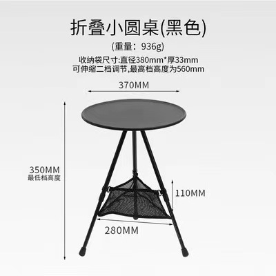 야외 알루미늄 합금 접이식 작은 원형 테이블 조절 가능한 저장 캠핑 테이블 캠핑 낚시 휴대용 원형 테이블