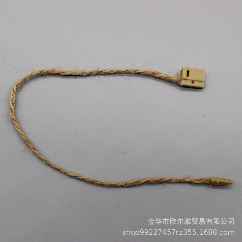跨境电商高档方扣麻绳吊粒服装吊绳吊牌挂绳棕色麻绳现货批发