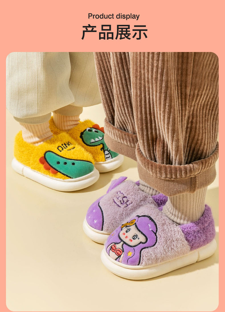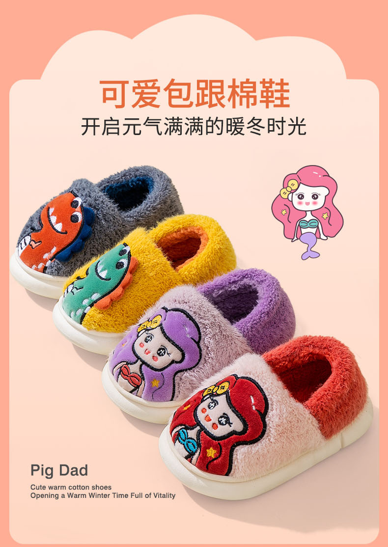 겨울 어린이 면 슬리퍼 가방 뒤꿈치 소녀 소년 공룡 실내 푹신한 슬리퍼 어린이 아기 미끄럼 방지 면화 신발스토어 가기