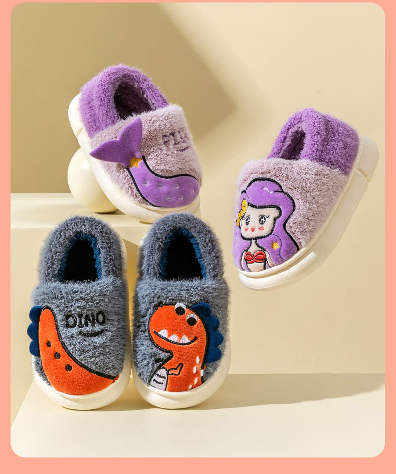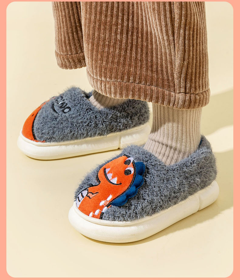 겨울 어린이 면 슬리퍼 가방 뒤꿈치 소녀 소년 공룡 실내 푹신한 슬리퍼 어린이 아기 미끄럼 방지 면화 신발