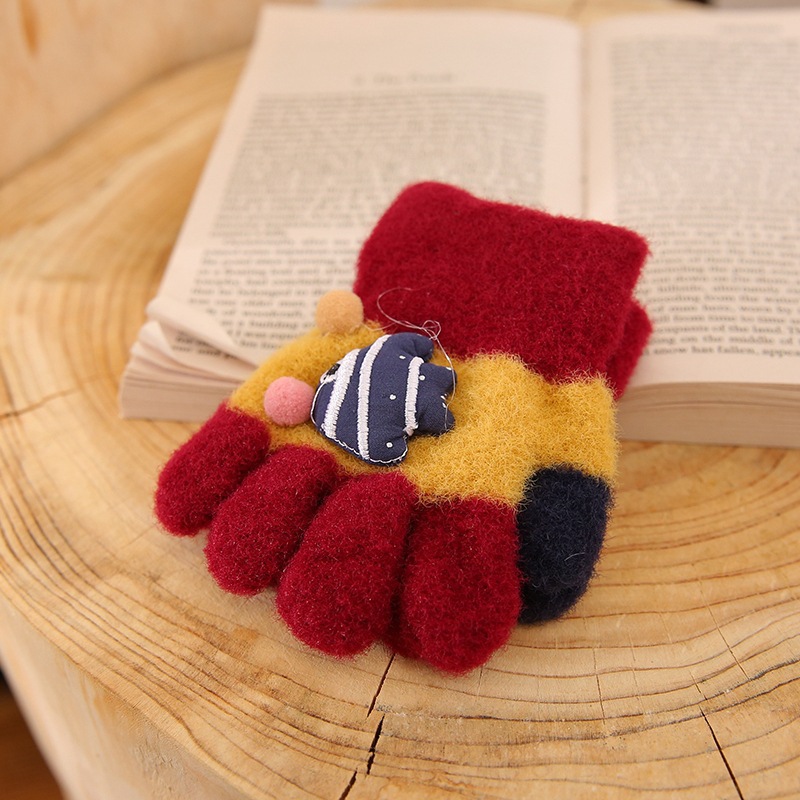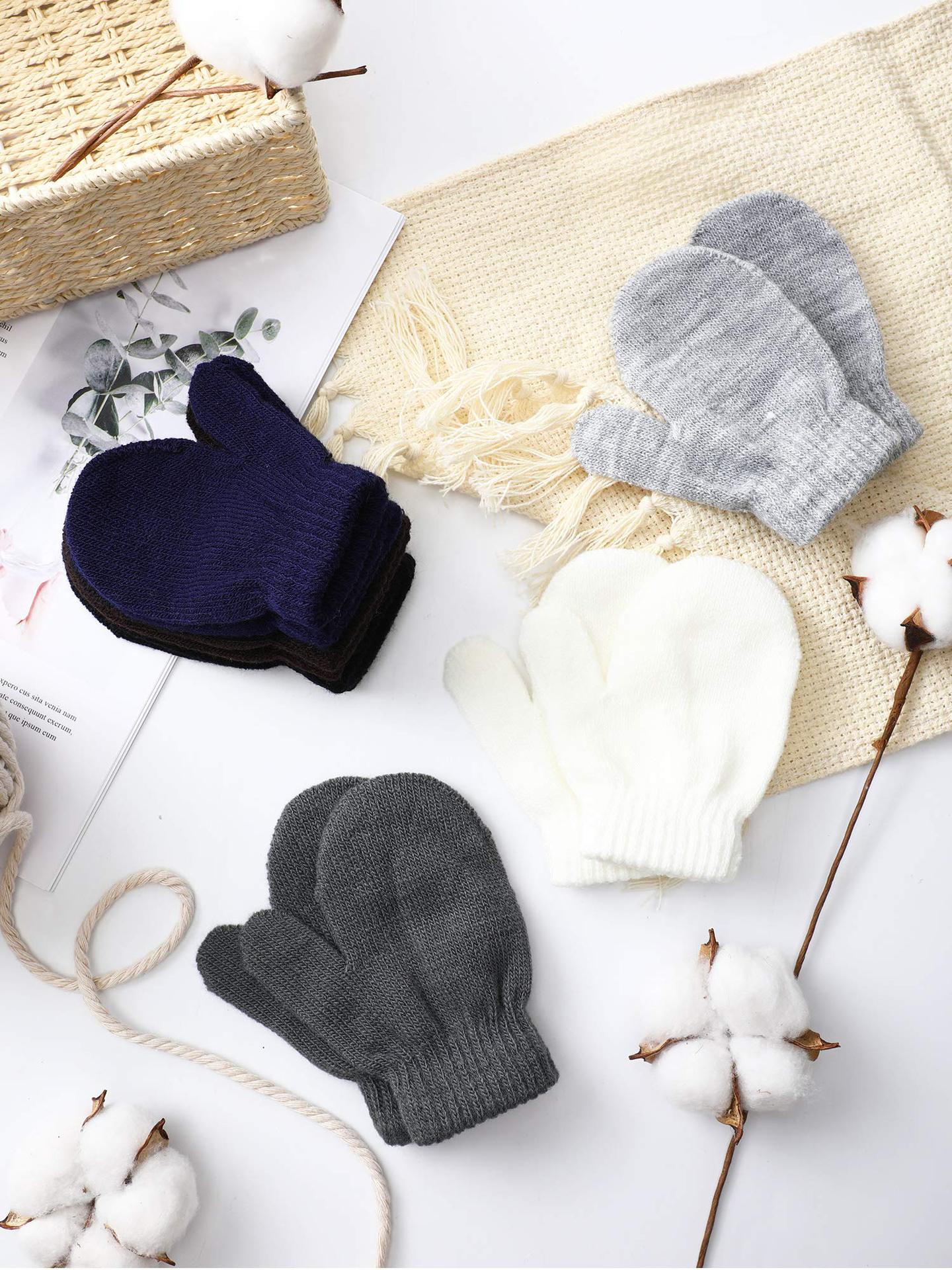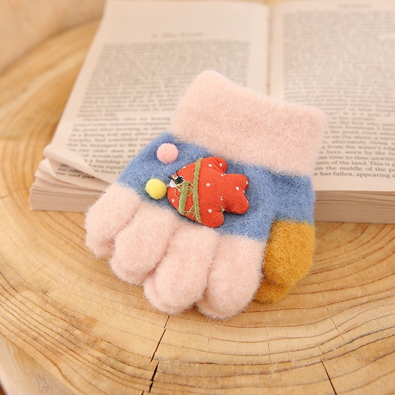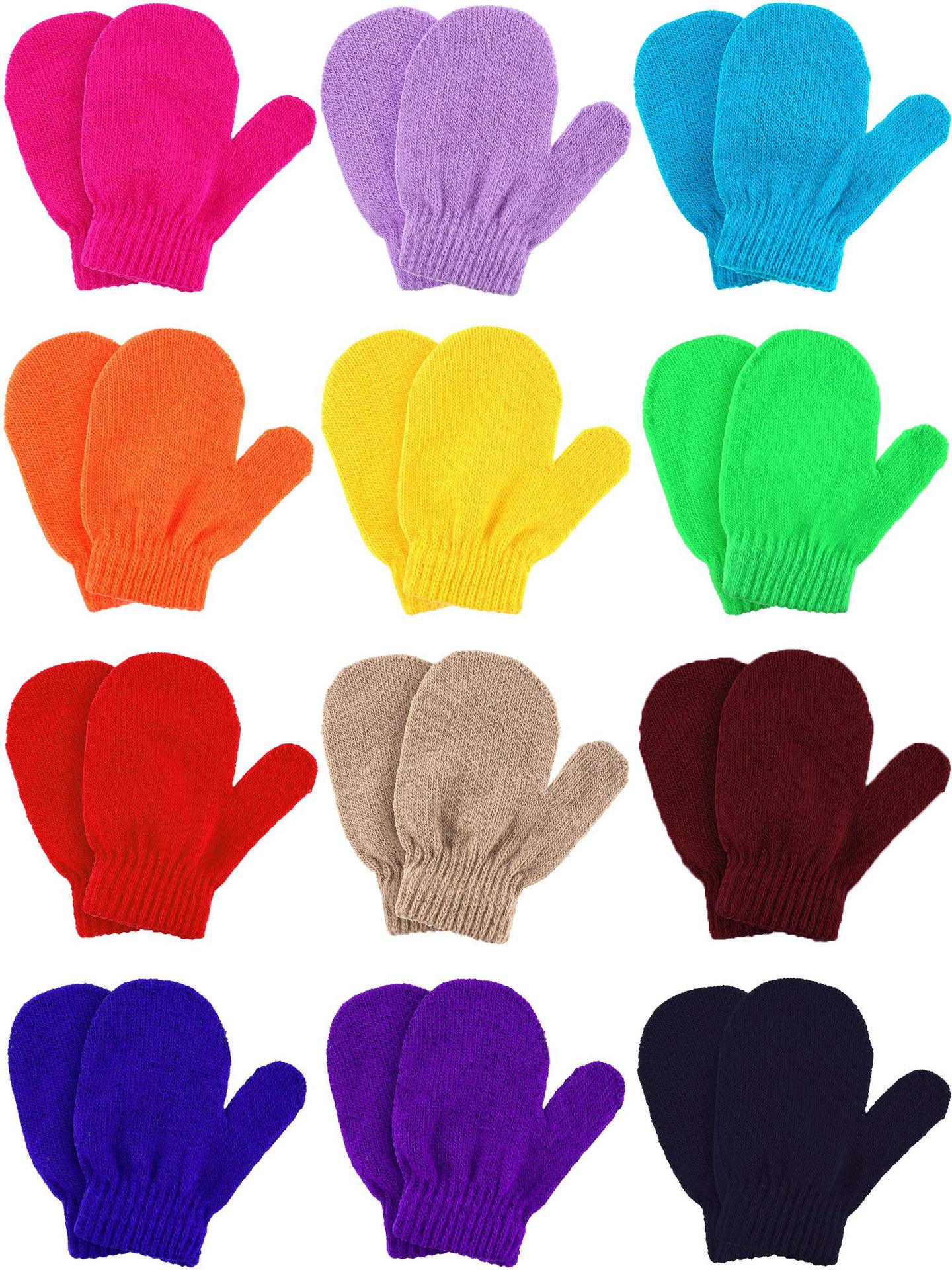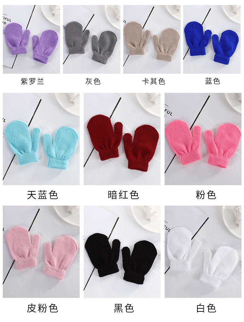 단색 가을과 겨울 아크릴 장갑 어린이 만화 따뜻한 니트 마술 아기 안티 스크래치 장갑 도매