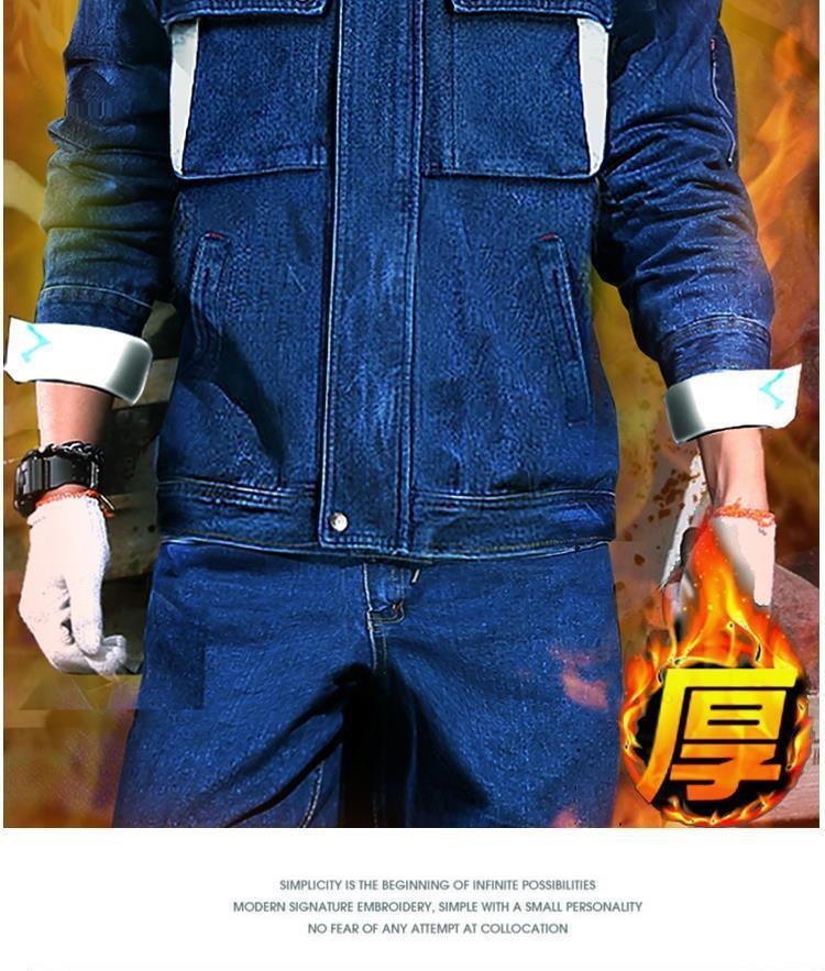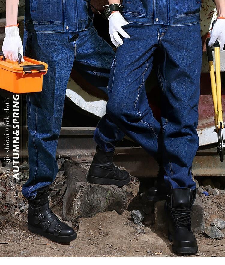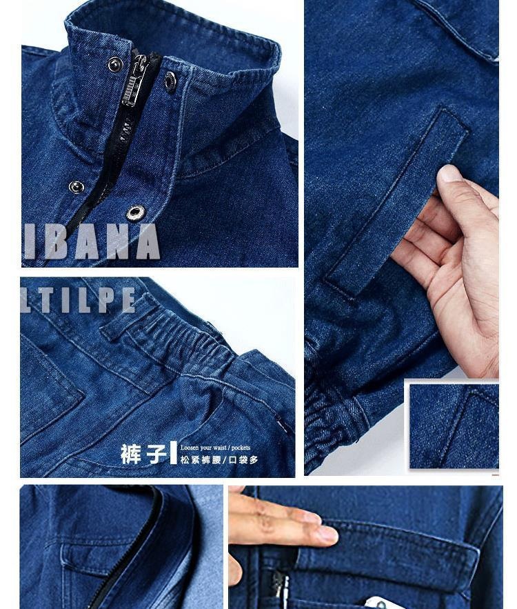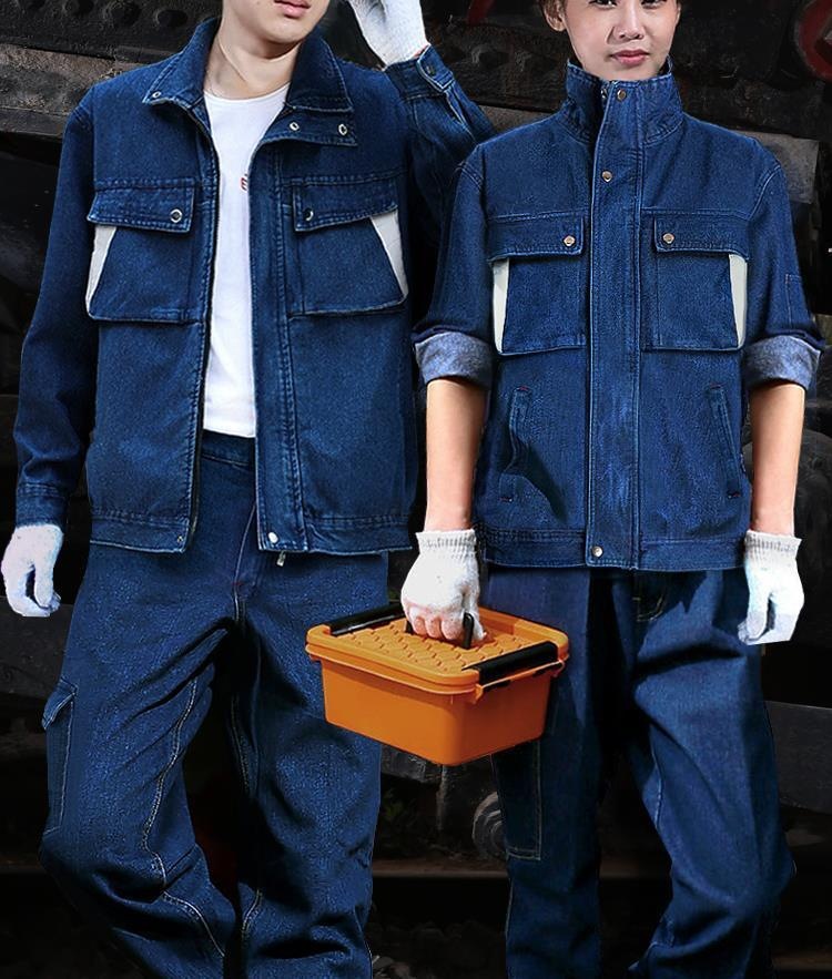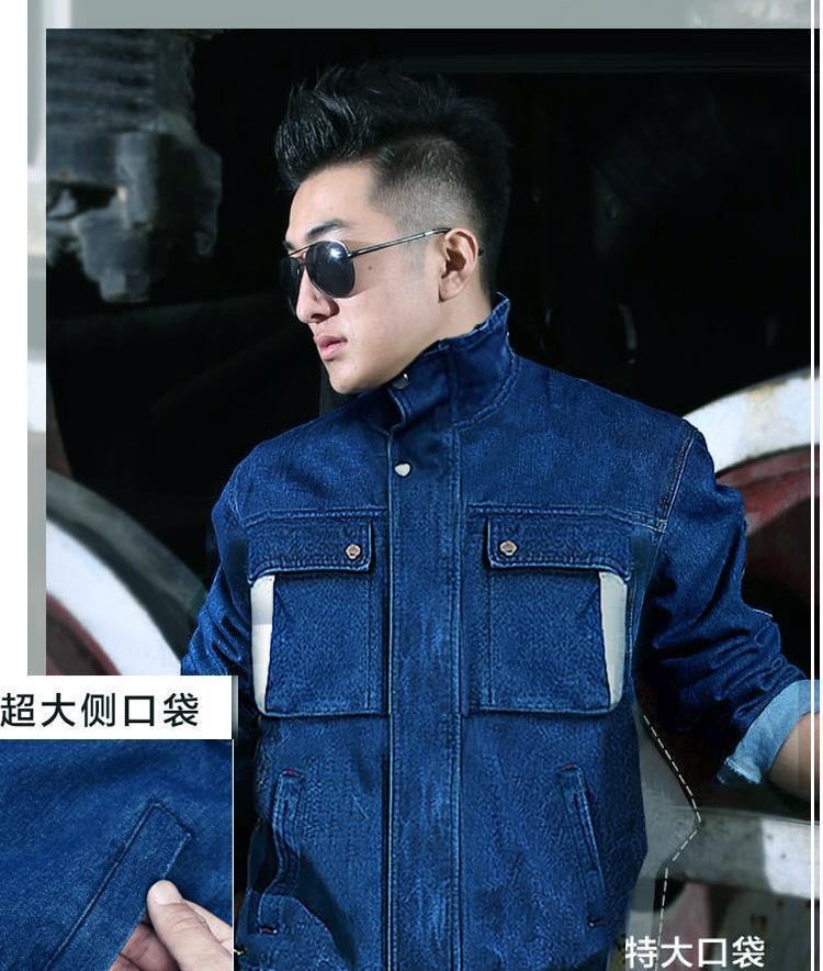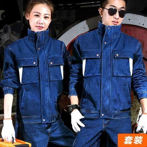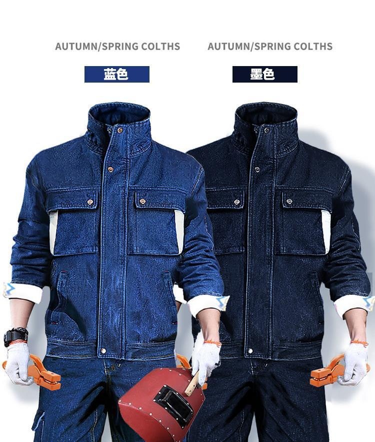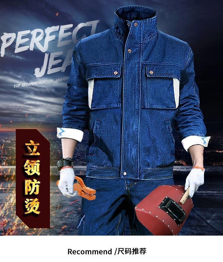 봄과 가을 작업복 세트 남성용 전기 용접 스탠드 칼라 데님 안티 스케일 내마모성 노동 보호 의류 용접기의 작업복 남성용 작업복스토어 가기