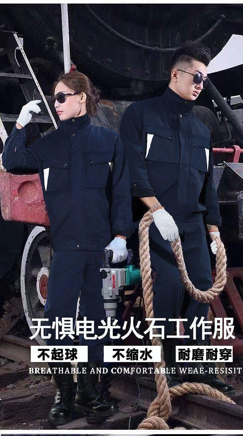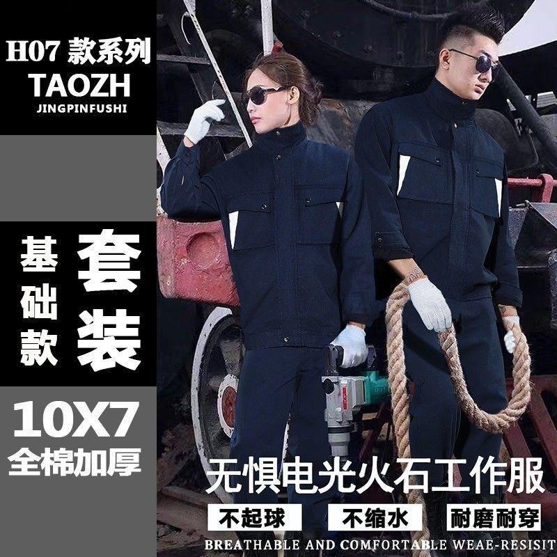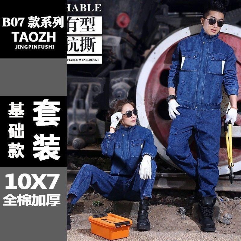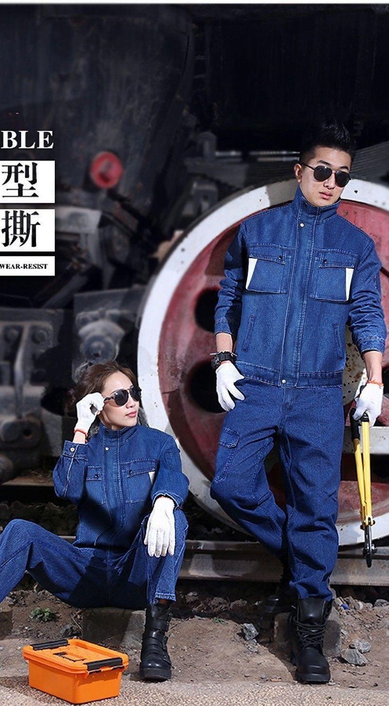 용접 데님 작업복 세트 남성용 두꺼운 용접기 작업복 마모 방지 전기 노동 보호 의류 건설 현장 툴링스토어 가기