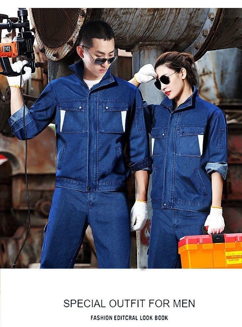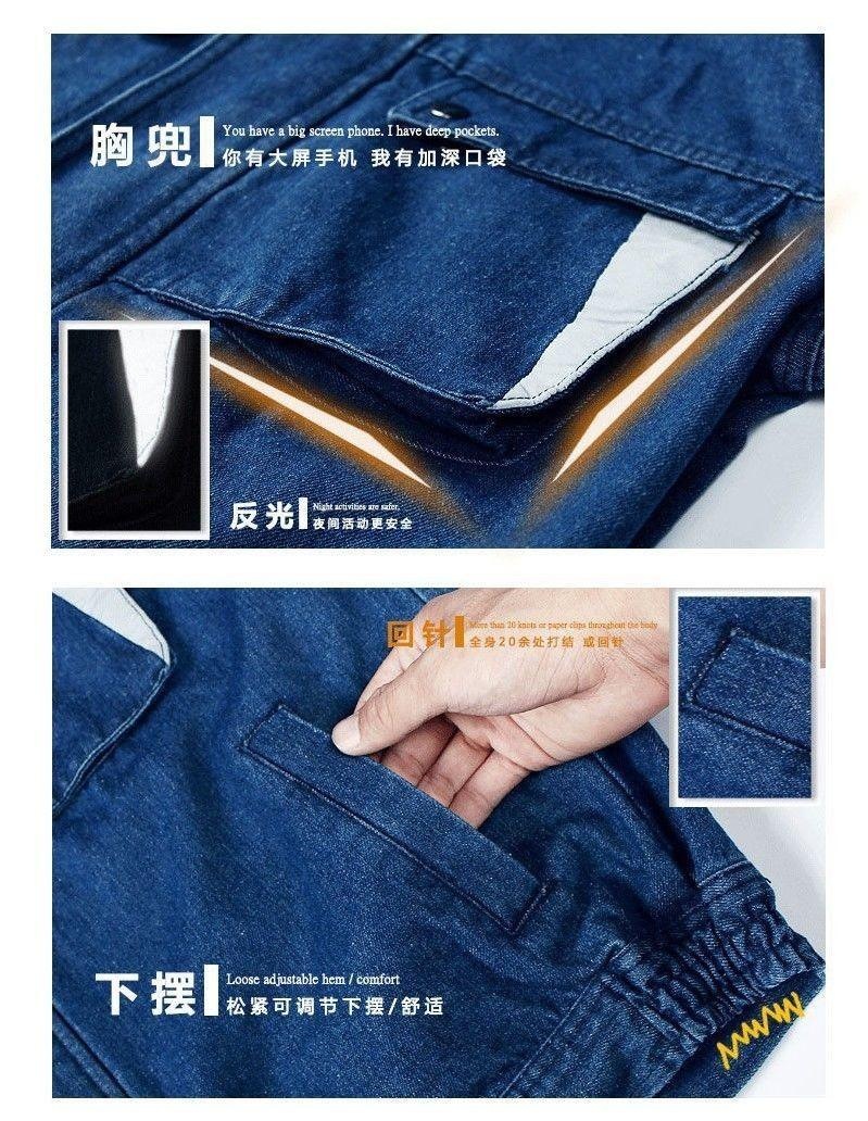용접 데님 작업복 세트 남성용 두꺼운 용접기 작업복 마모 방지 전기 노동 보호 의류 건설 현장 툴링