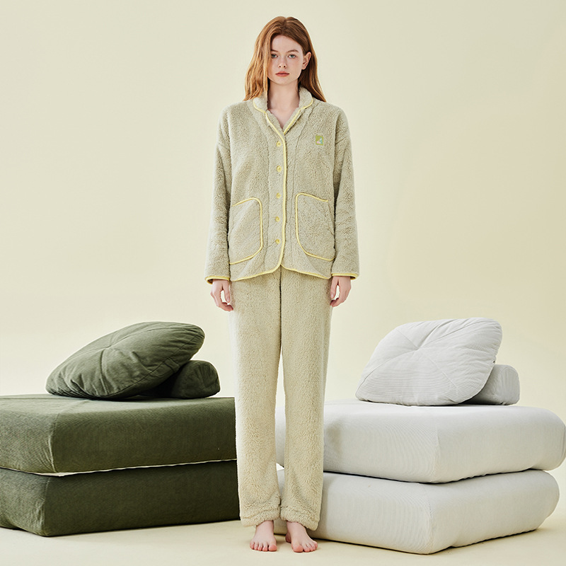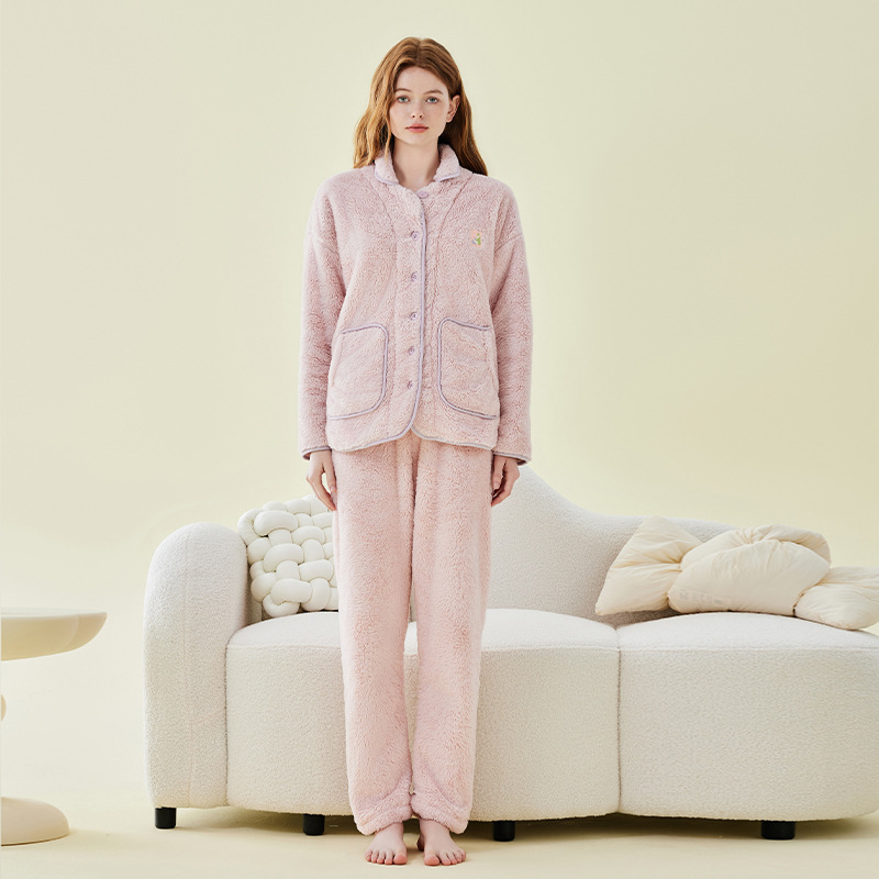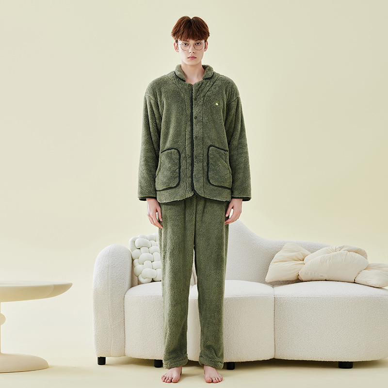 가을 겨울 커플 잠옷 남성용 벨벳 코랄 벨벳 따뜻한 홈웨어 세트 플란넬 두꺼운 잠옷 여성용 겨울