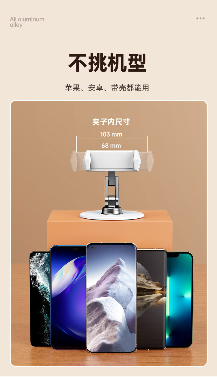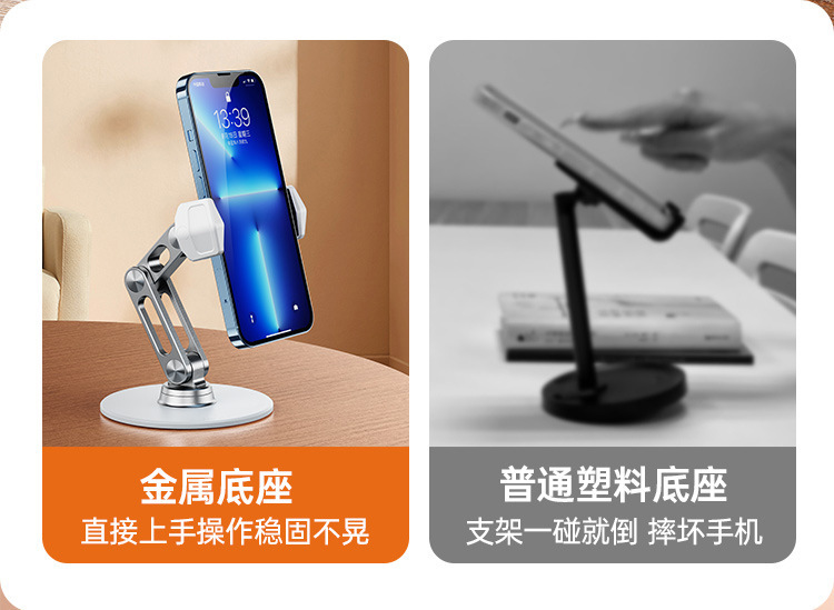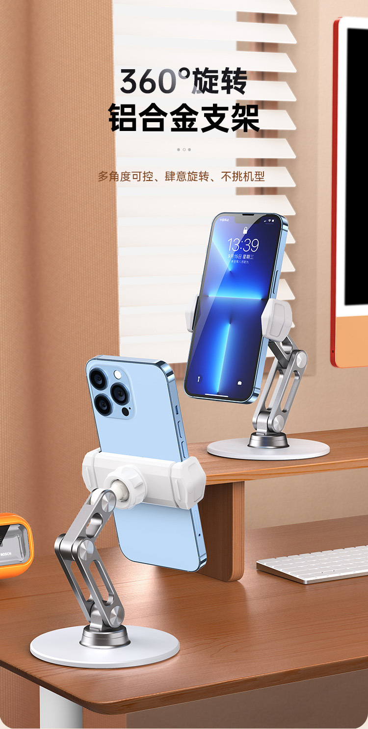 Boneruy 알루미늄 합금 데스크탑 휴대 전화 브래킷 국경 인기있는 게으른 브래킷 360 도 회전 생방송 브래킷