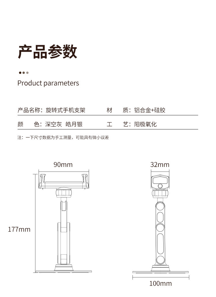 Boneruy 알루미늄 합금 데스크탑 휴대 전화 브래킷 국경 인기있는 게으른 브래킷 360 도 회전 생방송 브래킷스토어 가기
