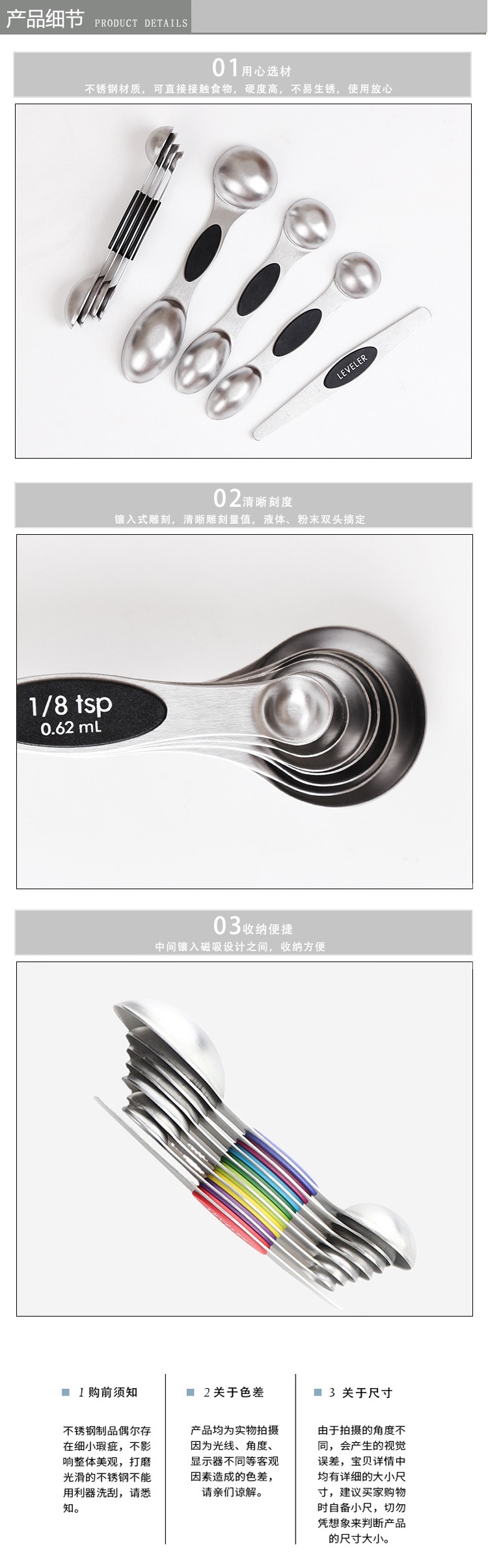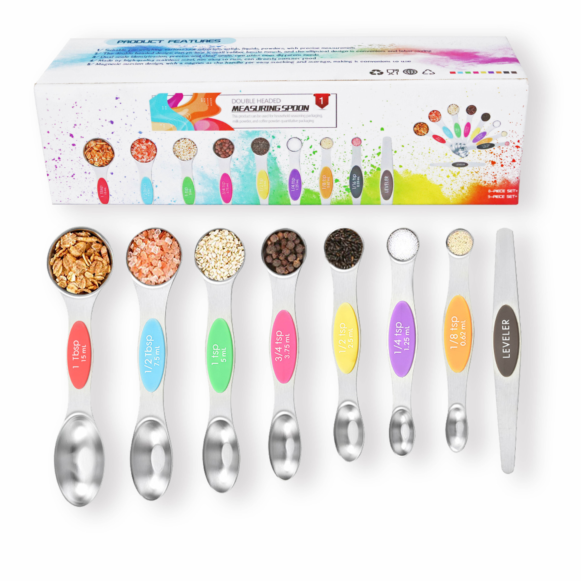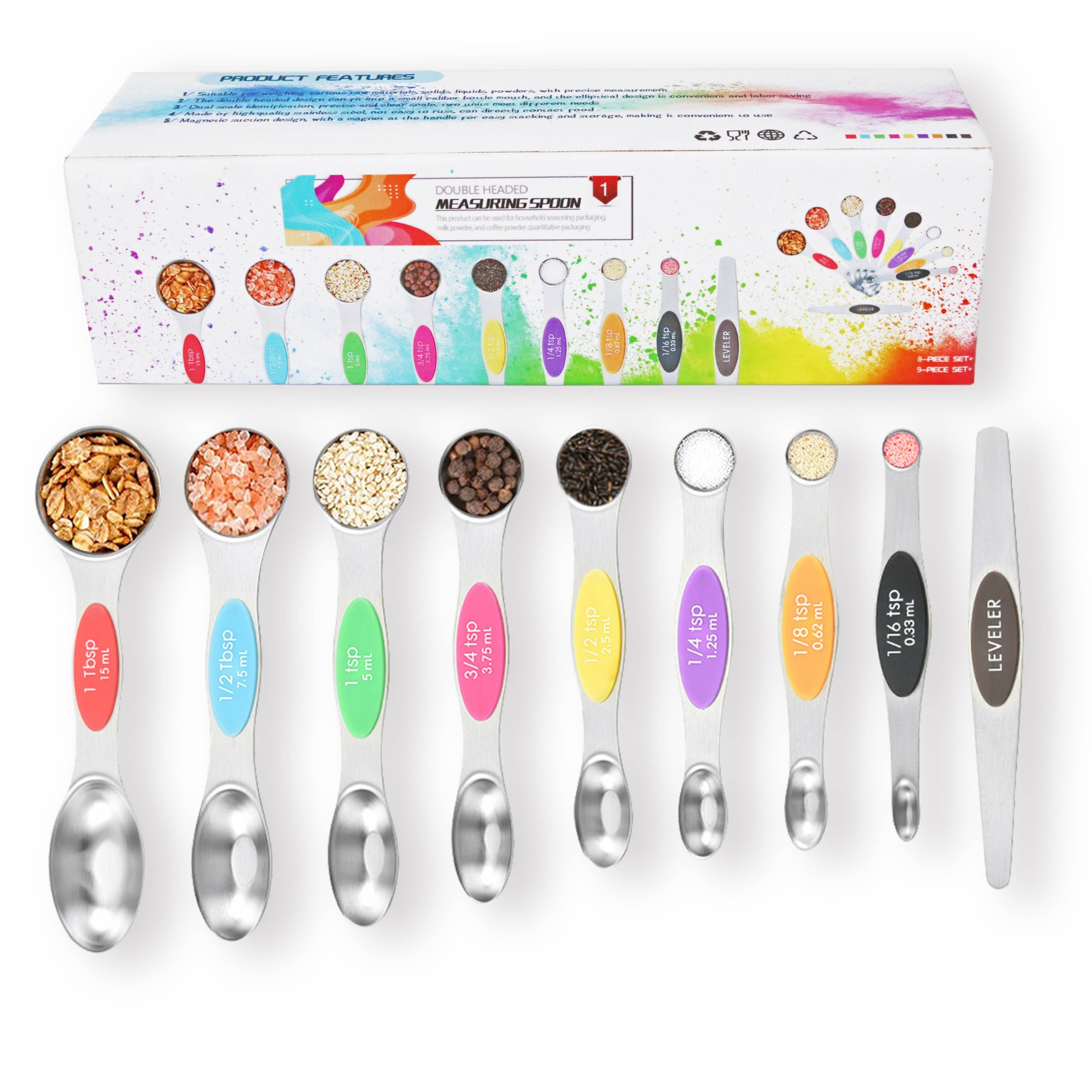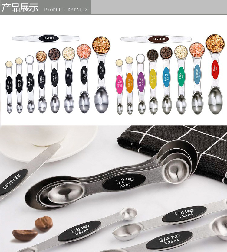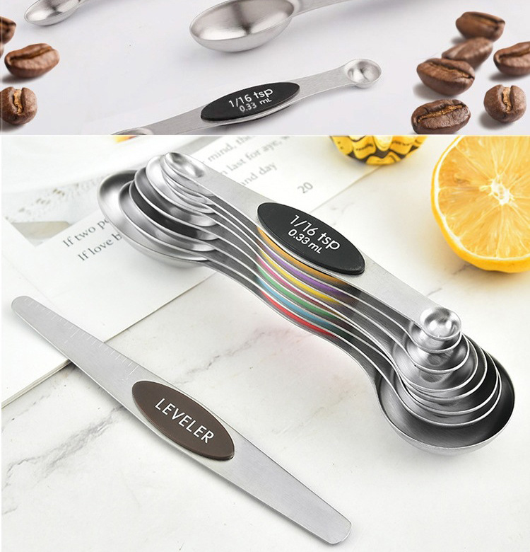 제조업체 재고 자석식 양면 계량스푼 8/9개 세트 해외배송 스테인리스 베이킹 가정용 주방 계량 조미료 스푼