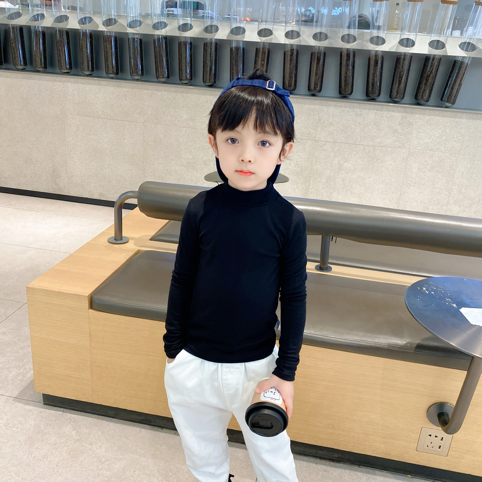 (清款) 女童磨毛半高领打底衫洋气百搭男童长袖T恤批发春秋
