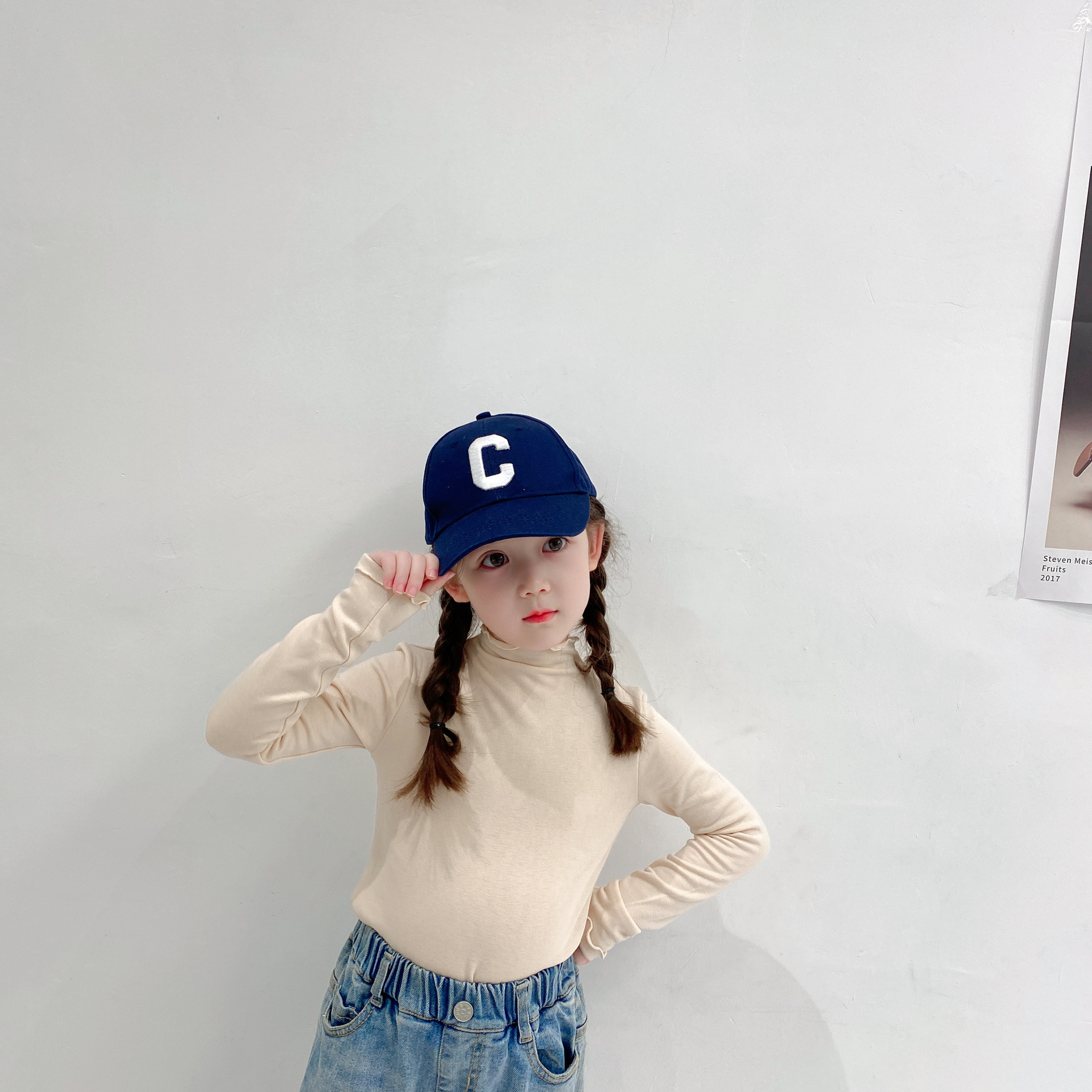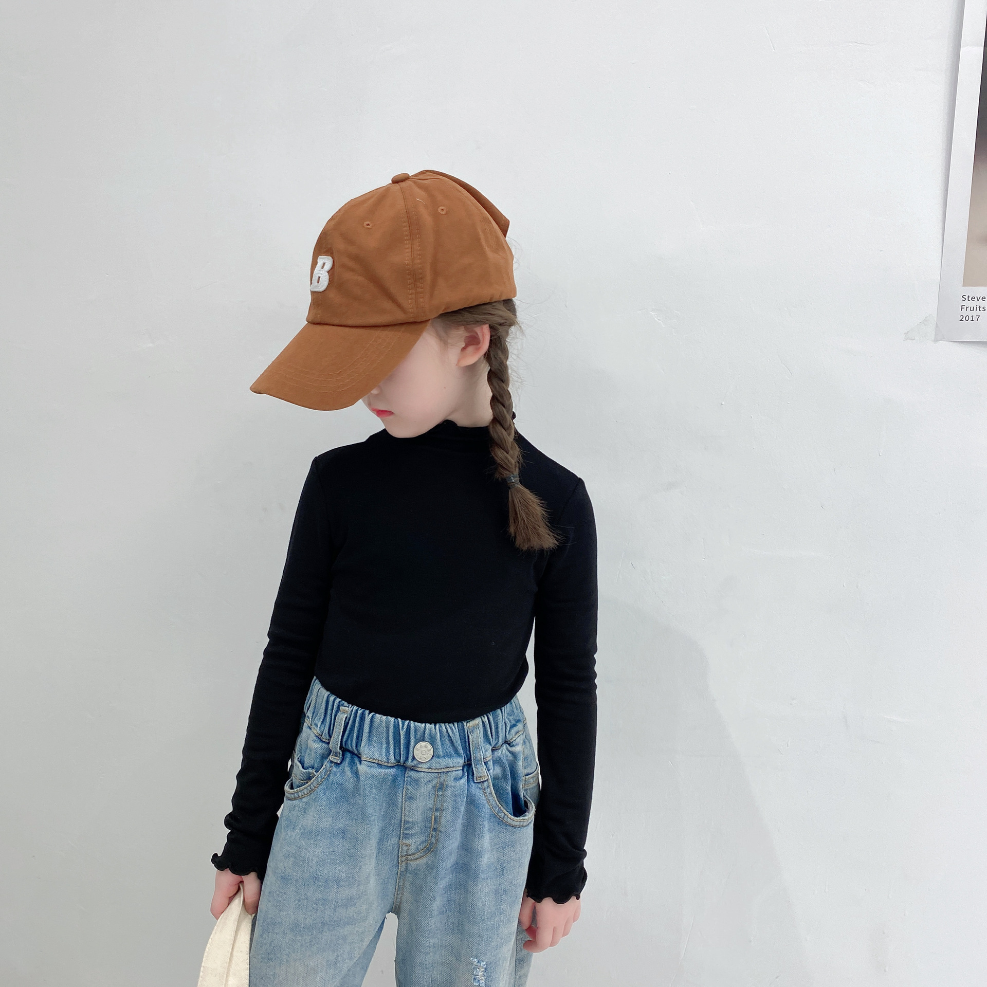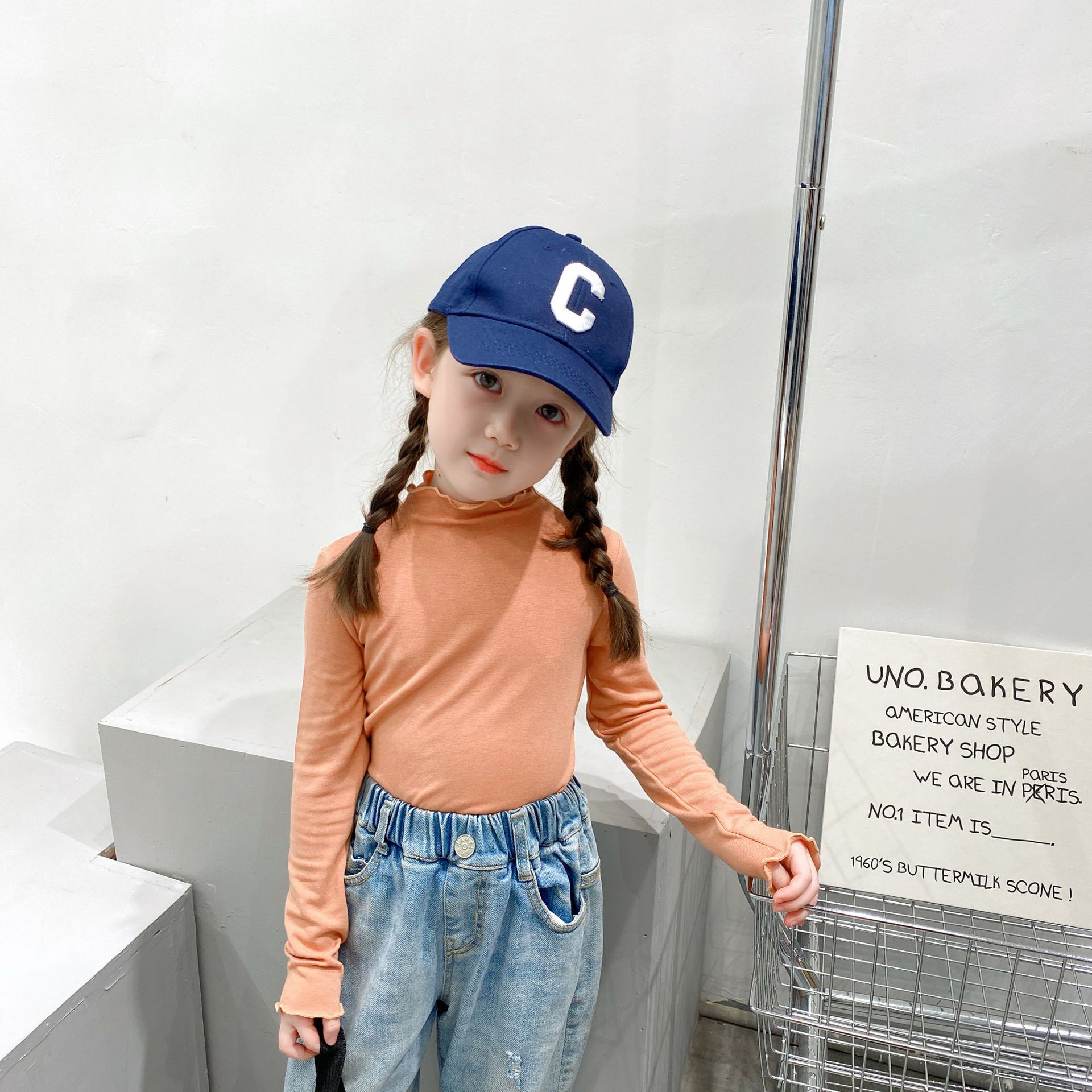 (Qing) 여아용 기모 하프 터틀넥 셔츠, 패셔너블하고 다재다능한 남아용 긴팔 티셔츠 도매 봄, 가을 스타일스토어 가기