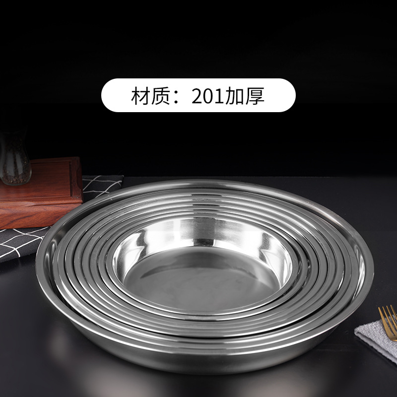 두꺼운 304 스테인레스 스틸 케이크 접시 가정용 차가운 피부 공 공 플랫 바닥 라운드 찐 떡 접시 매점 요리 도매