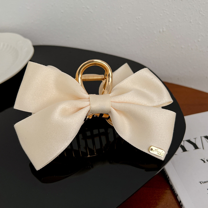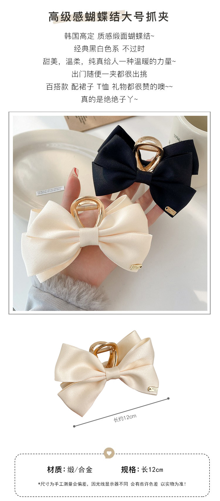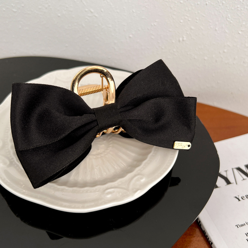 블랙 새틴 활 잡아 클립 여자의 여름 모자 간단한 기질 머리핀 뒤 머리 상어 클립 도매