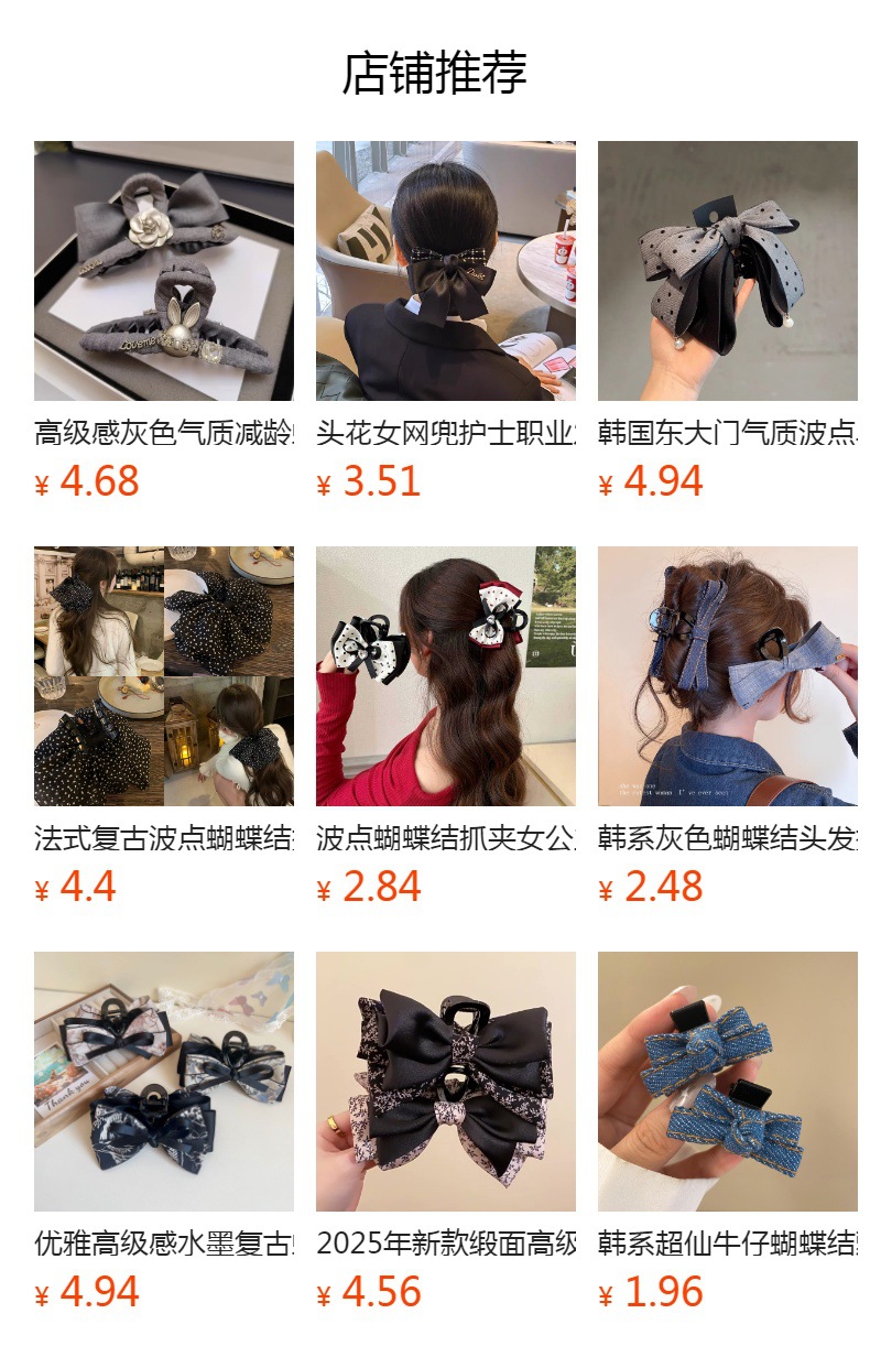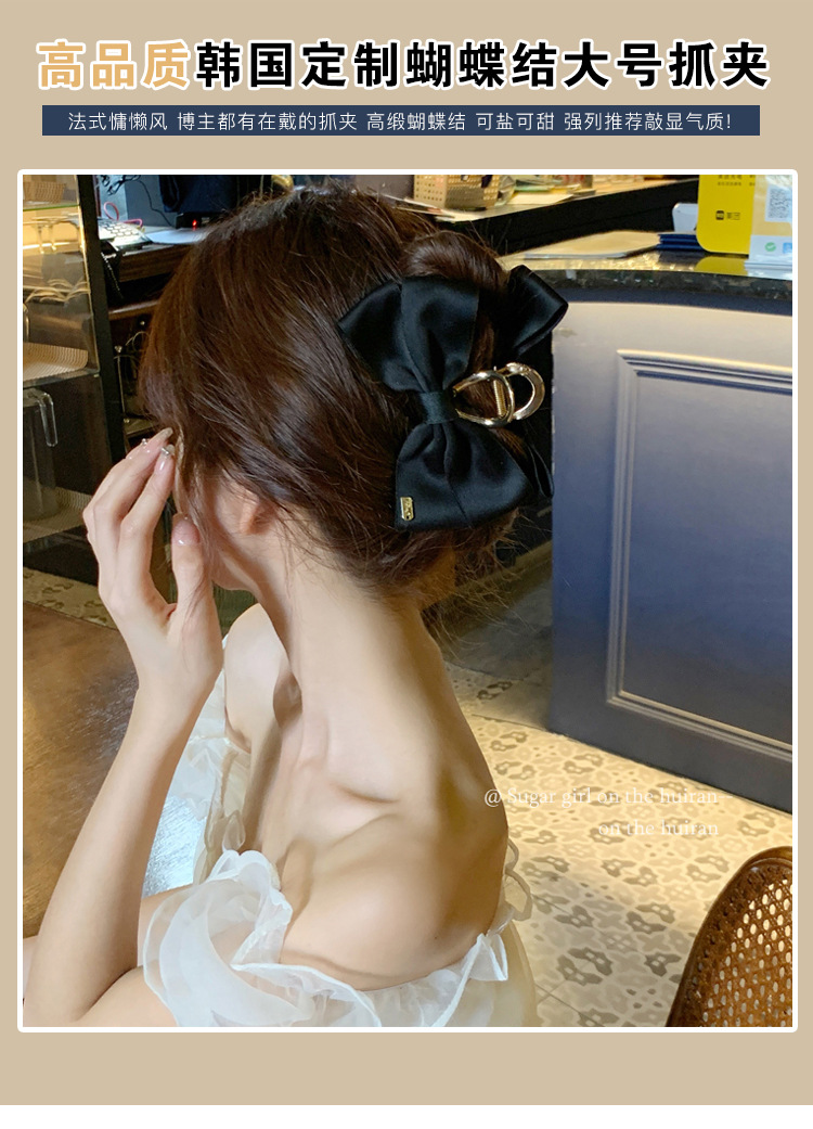 블랙 새틴 활 잡아 클립 여자의 여름 모자 간단한 기질 머리핀 뒤 머리 상어 클립 도매스토어 가기