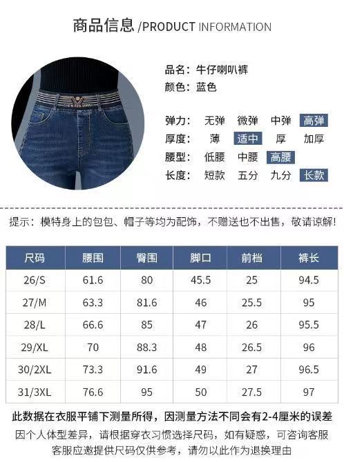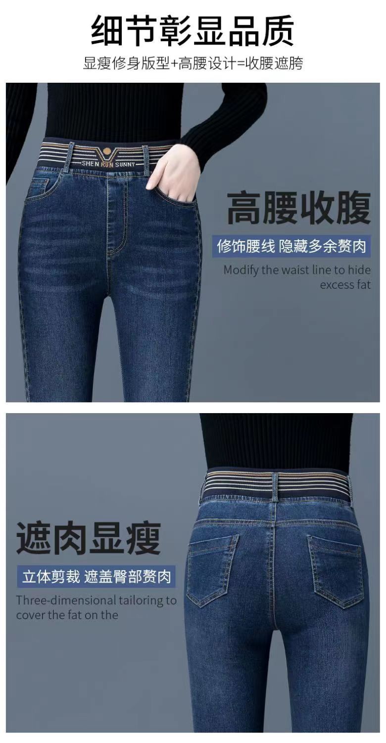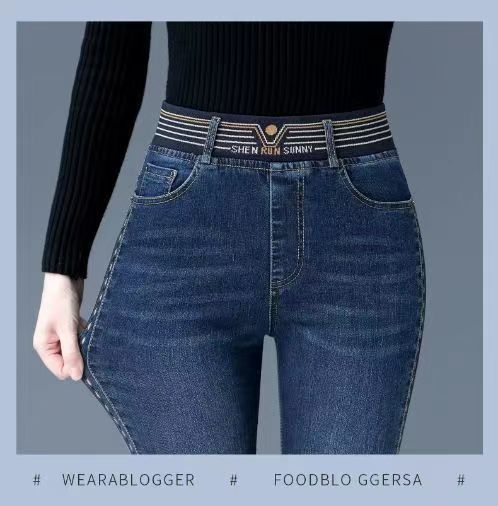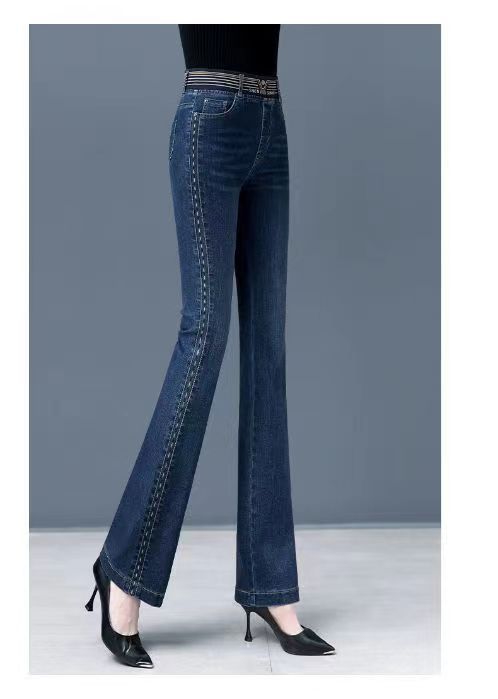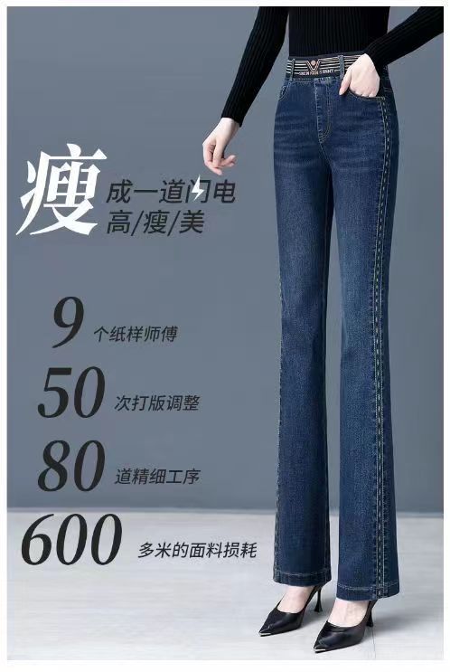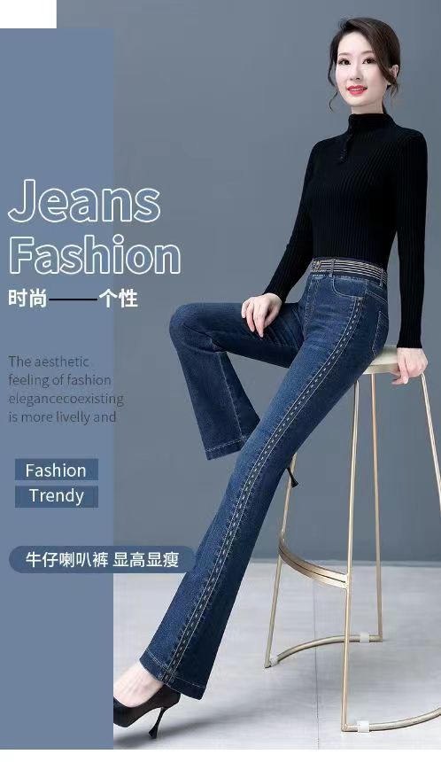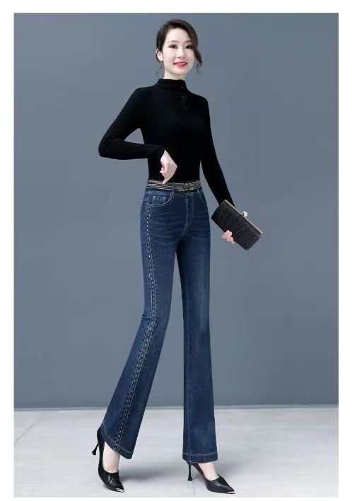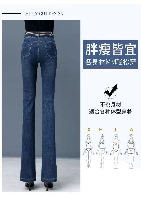 탄성 허리 청바지 여성 바지 봄, 가을 새로운 탄성 부츠 컷 바지 여성을위한 높은 허리 플러스 벨벳 플레어 바지스토어 가기