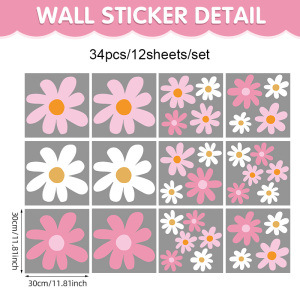 크로스보더 벽 스티커 데이지 벽 장식 벽 스티커 자체 접착 냉장고 꽃 어린이 방 스티커 벽지 창 스티커