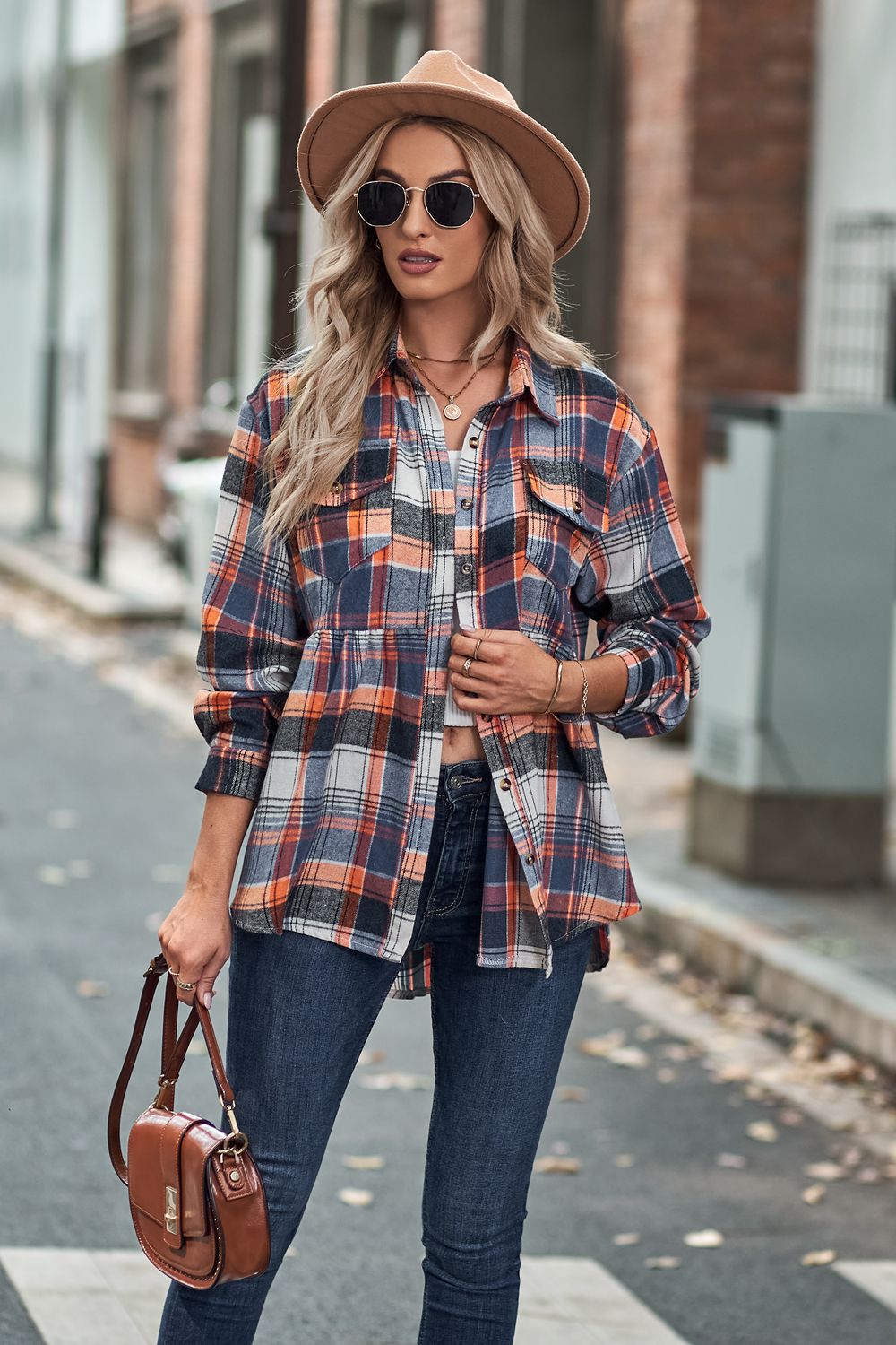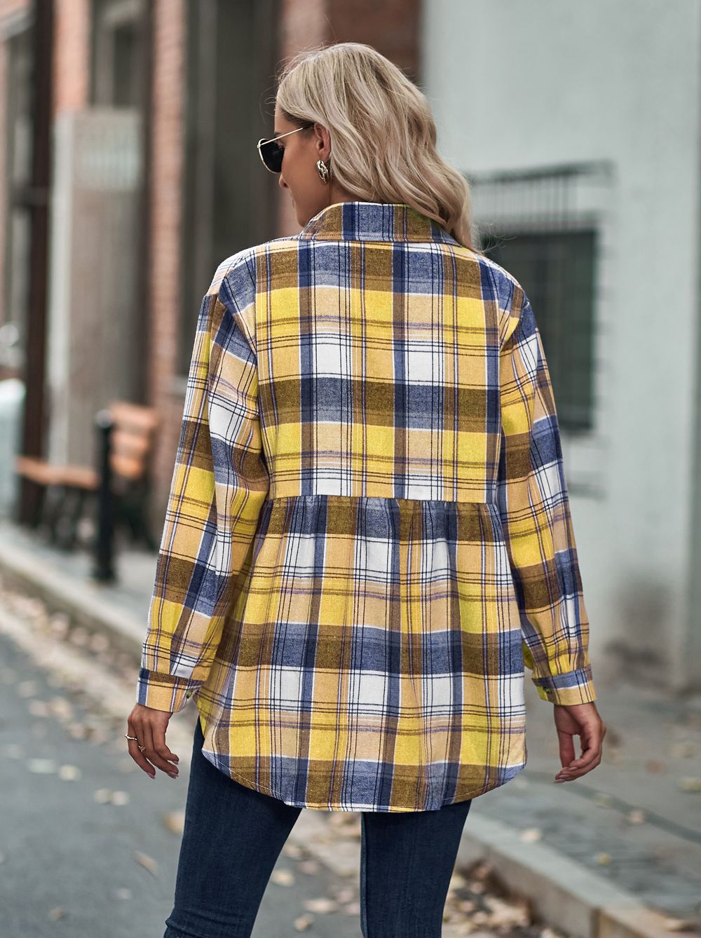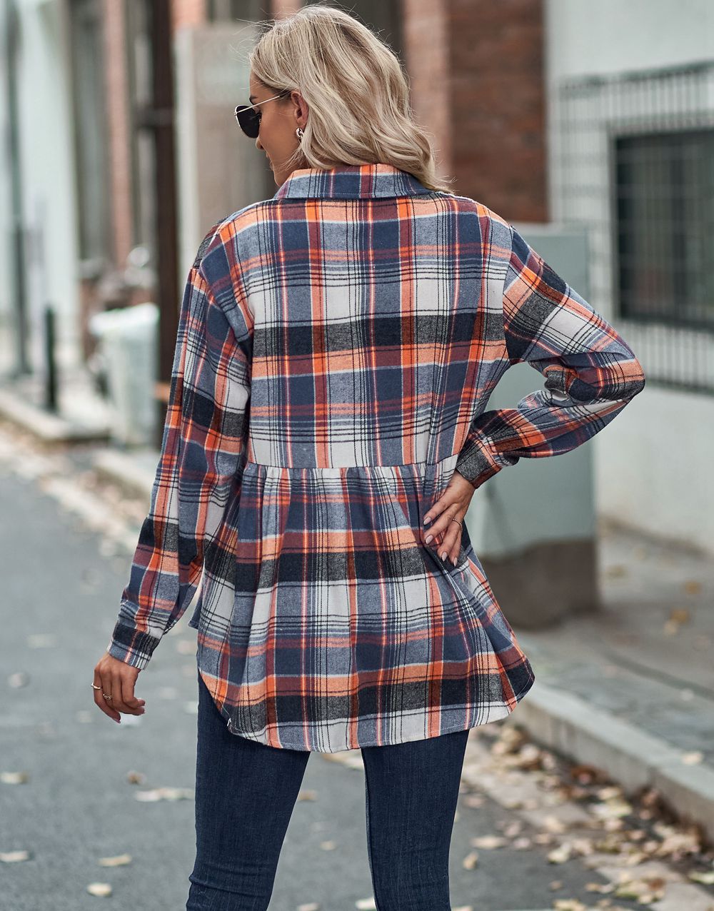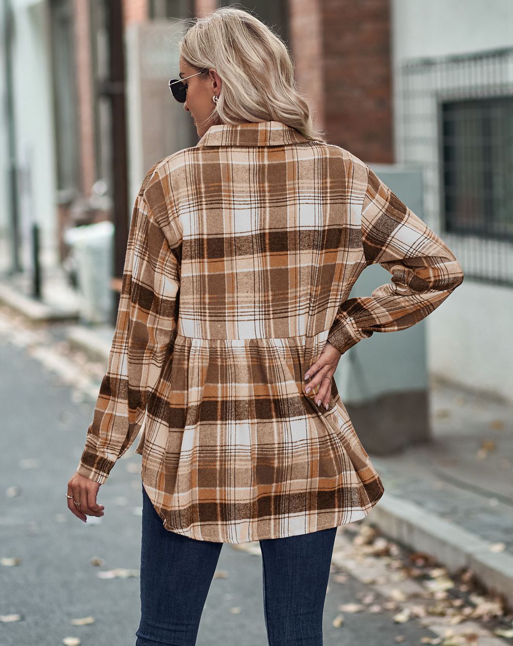 2025 크로스보더 여성상의 아마존 가을 겨울 신제품 라펠 긴팔 포켓 캐주얼 유럽 및 미국 격자 무늬 셔츠스토어 가기