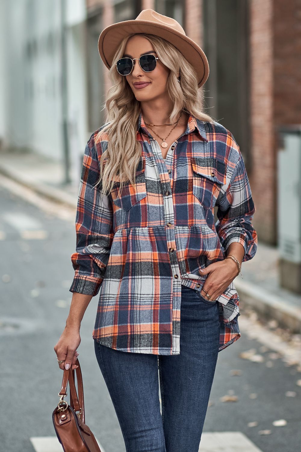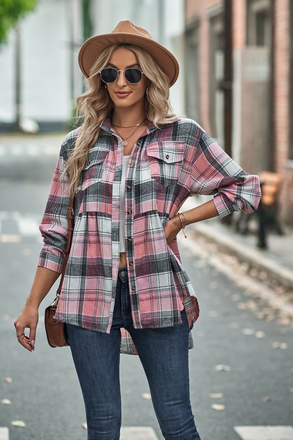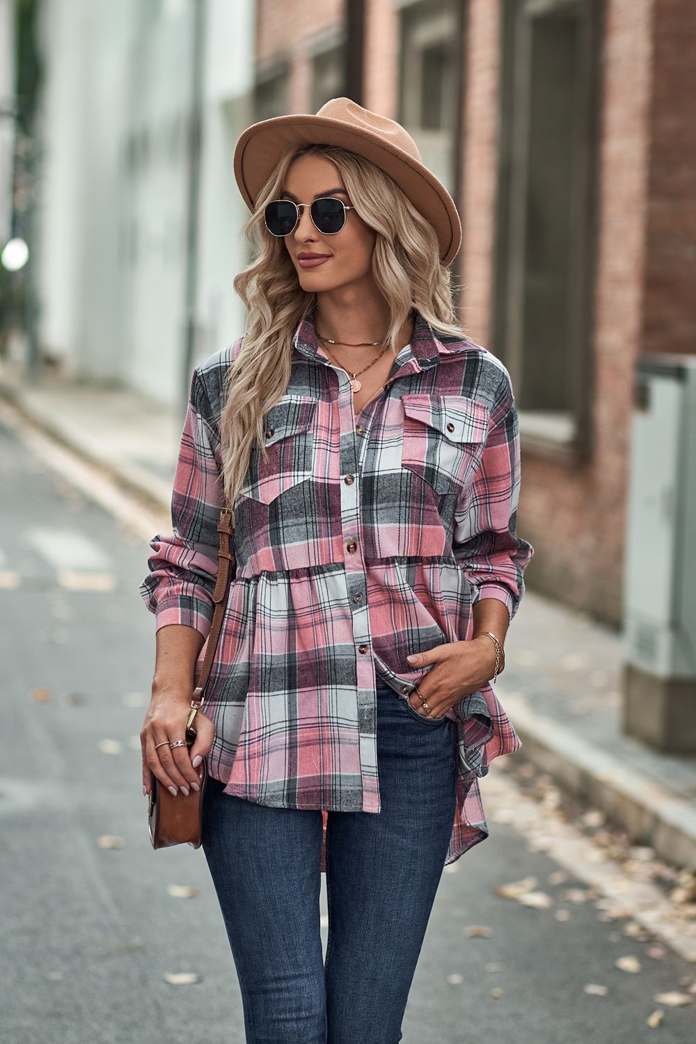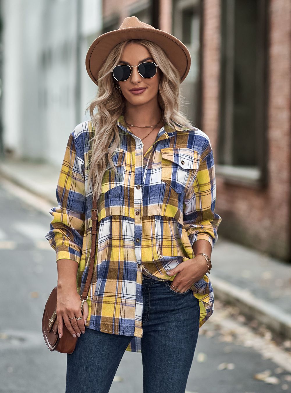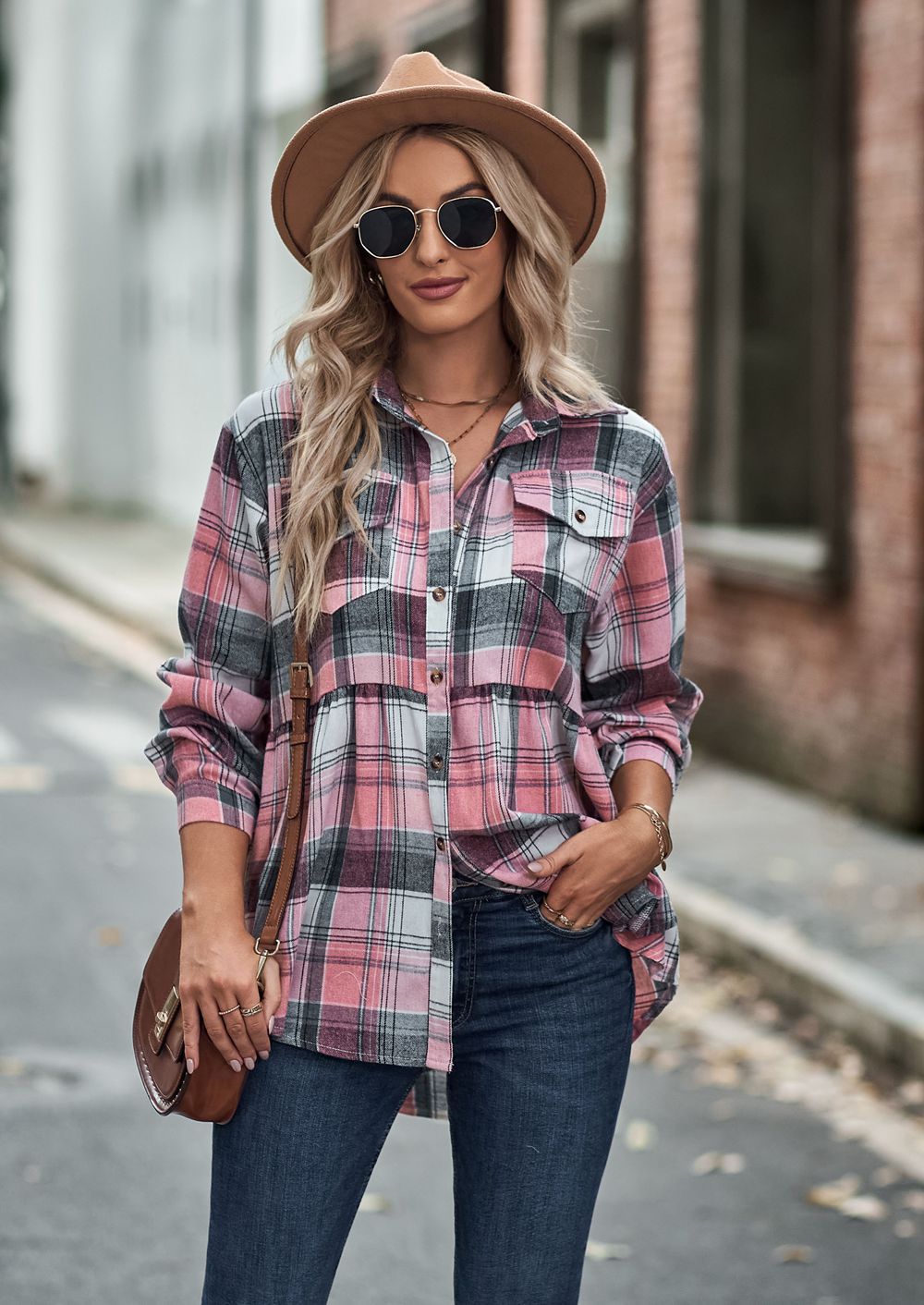 2025 크로스보더 여성상의 아마존 가을 겨울 신제품 라펠 긴팔 포켓 캐주얼 유럽 및 미국 격자 무늬 셔츠스토어 가기
