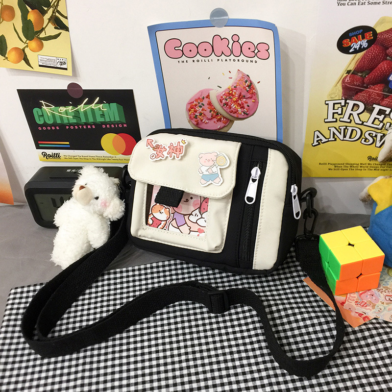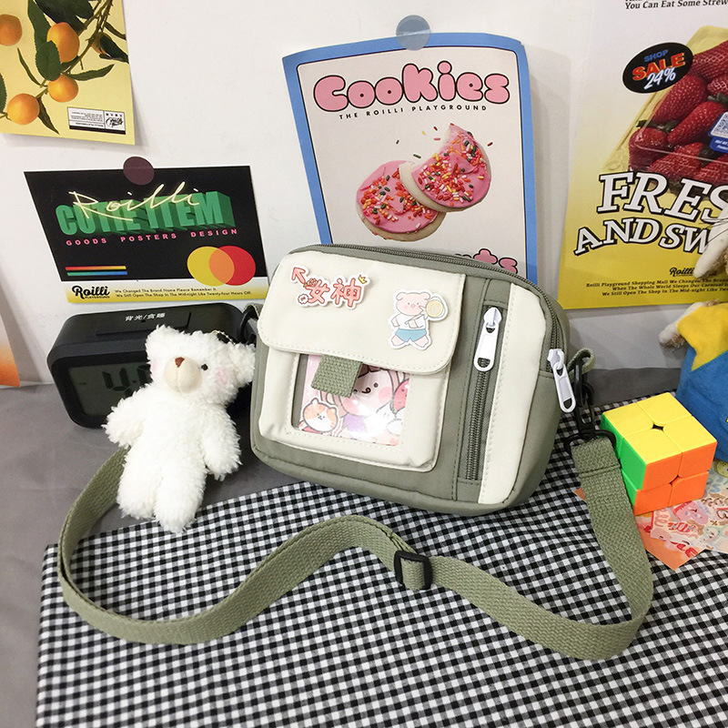 2024 여학생을위한 새로운 캔버스 가방 한국 스타일 작은 가방 ins 스타일 크로스 바디 백 문학 다목적 귀여운 숄더 백