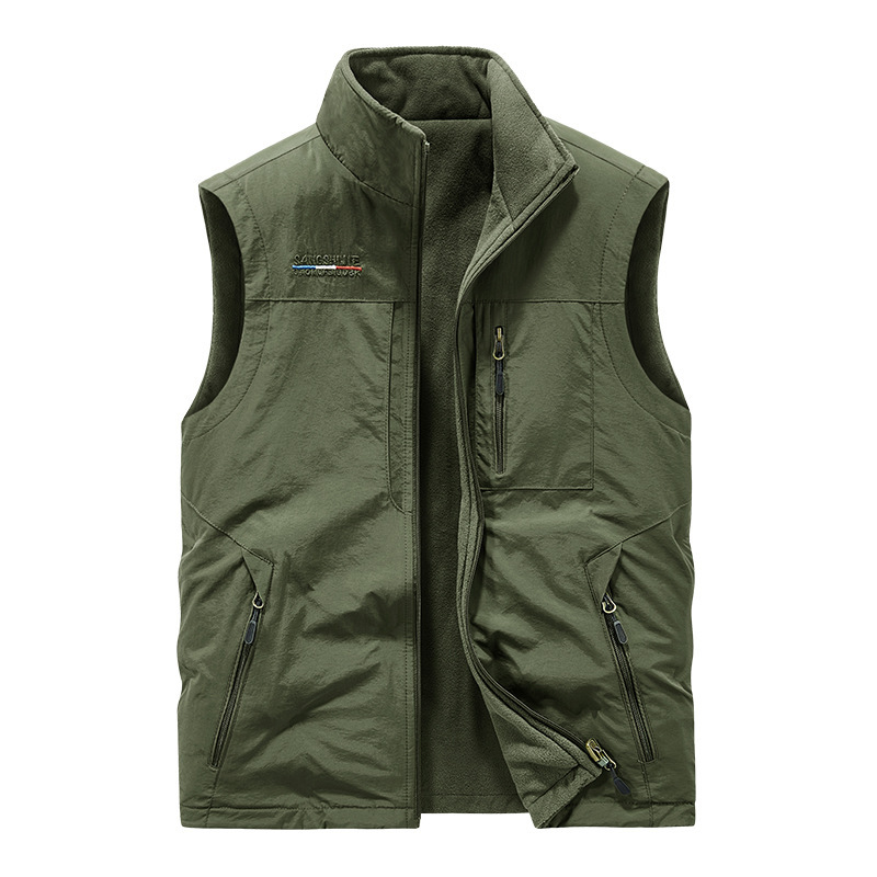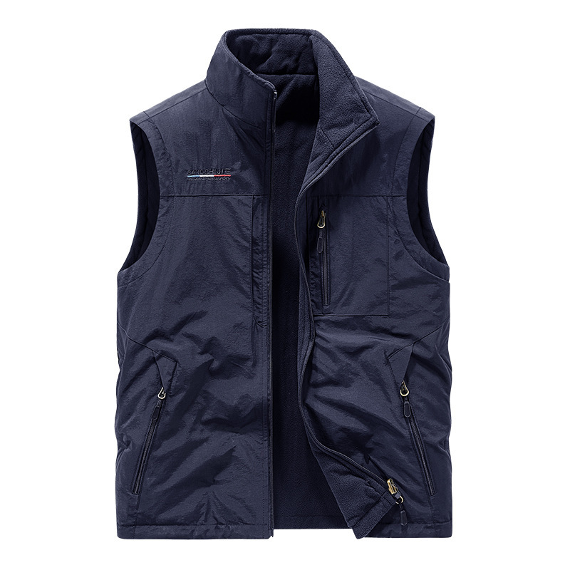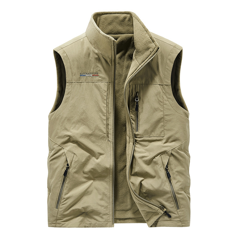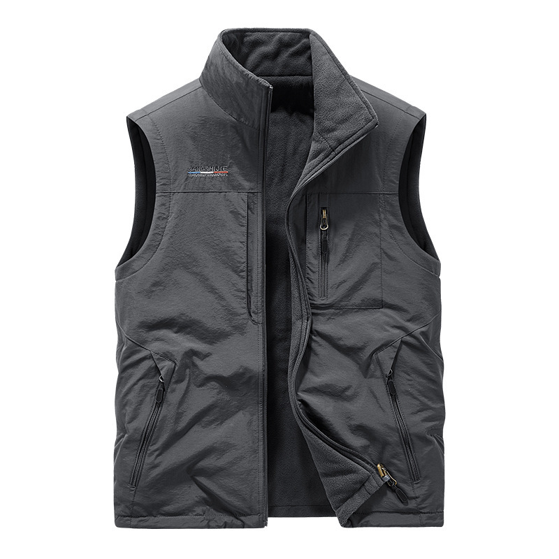 秋冬款双面穿马甲男士户外坎肩休闲青年多袋摇粒绒背心马夹1906A