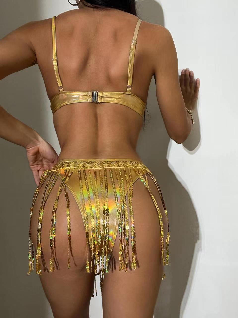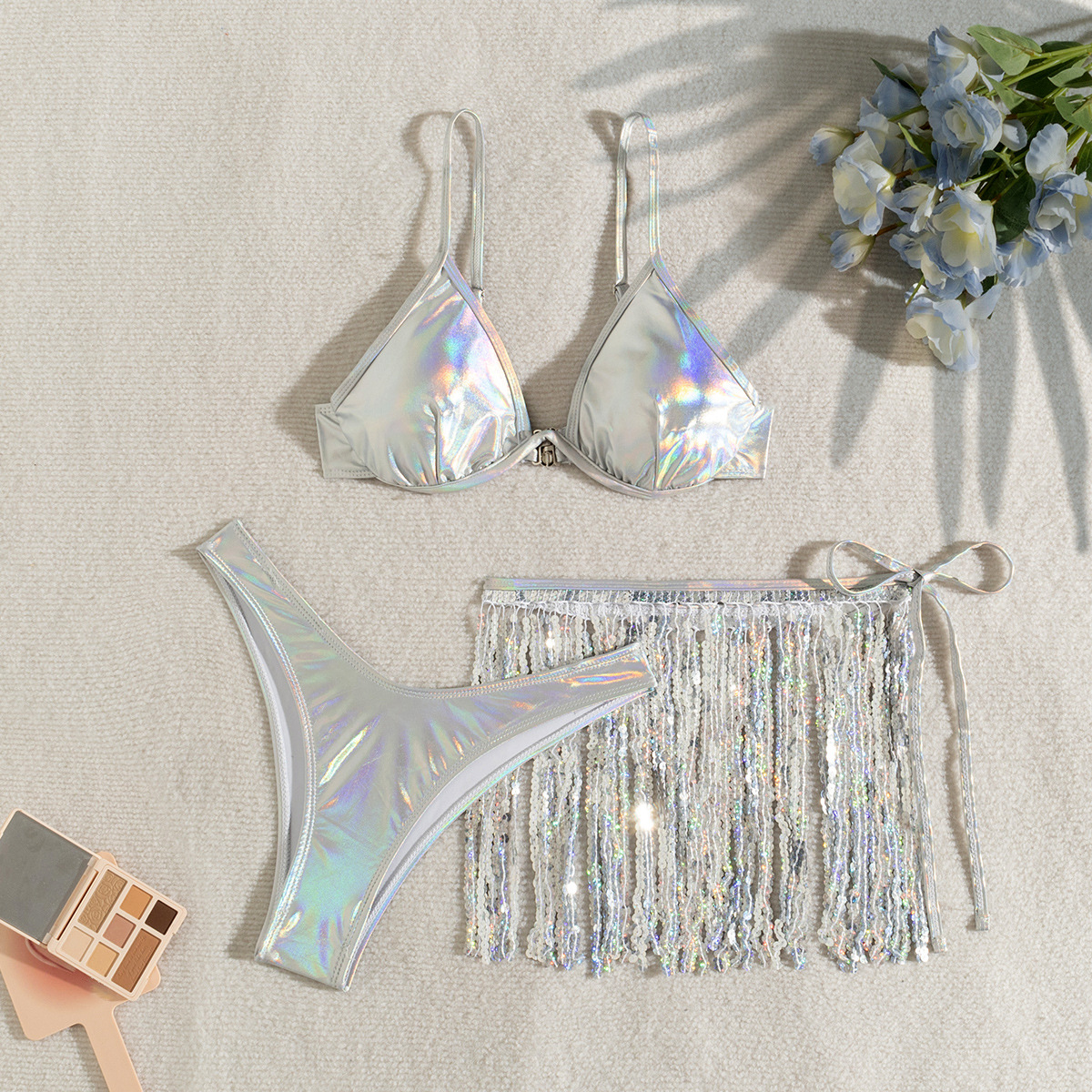 유럽풍 크로스보더 여성용 3피스 수영복, 스팽글 프린지 비키니 세트, 섹시한 스팽글 수영복스토어 가기