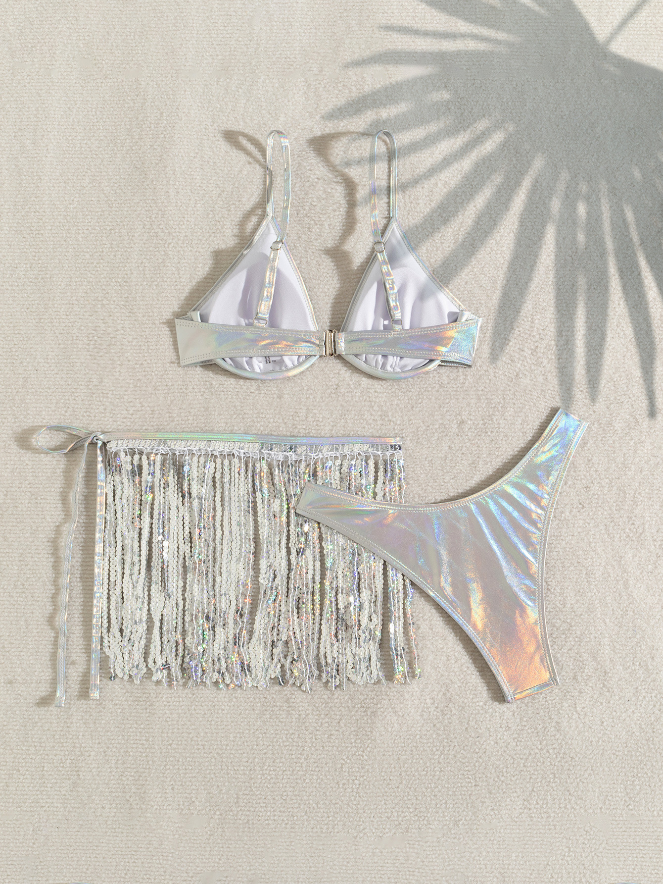 유럽풍 크로스보더 여성용 3피스 수영복, 스팽글 프린지 비키니 세트, 섹시한 스팽글 수영복