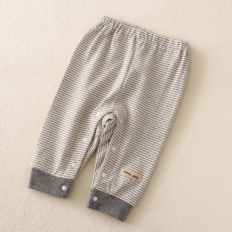 일본 가을과 겨울 두꺼운 어린이 바지 면 양면 원사 염색 오픈 베이비 버튼 바지